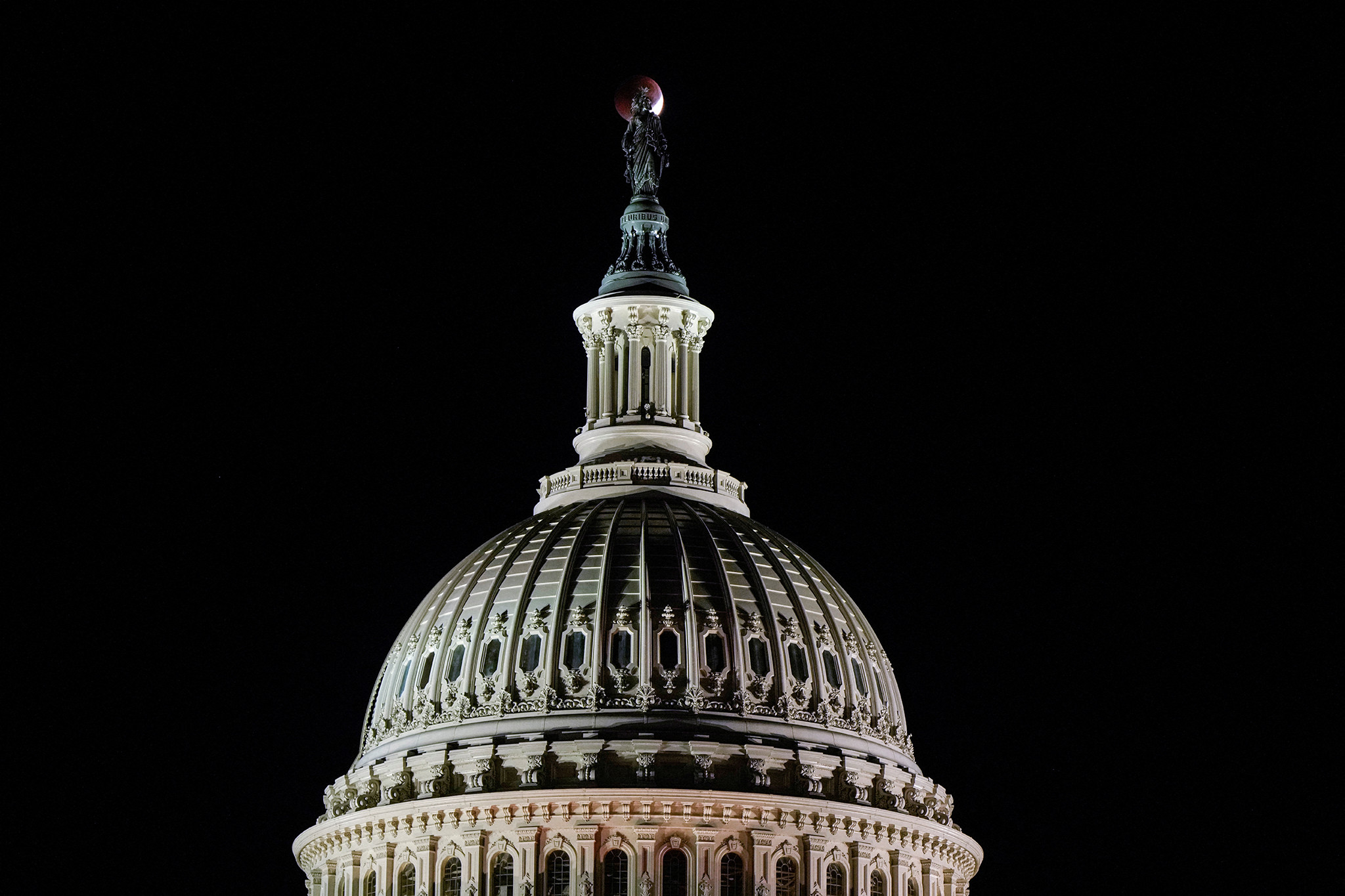 Tại mái vòm Tòa nhà Quốc hội ở Washington, Mỹ. Ảnh: Reuters.