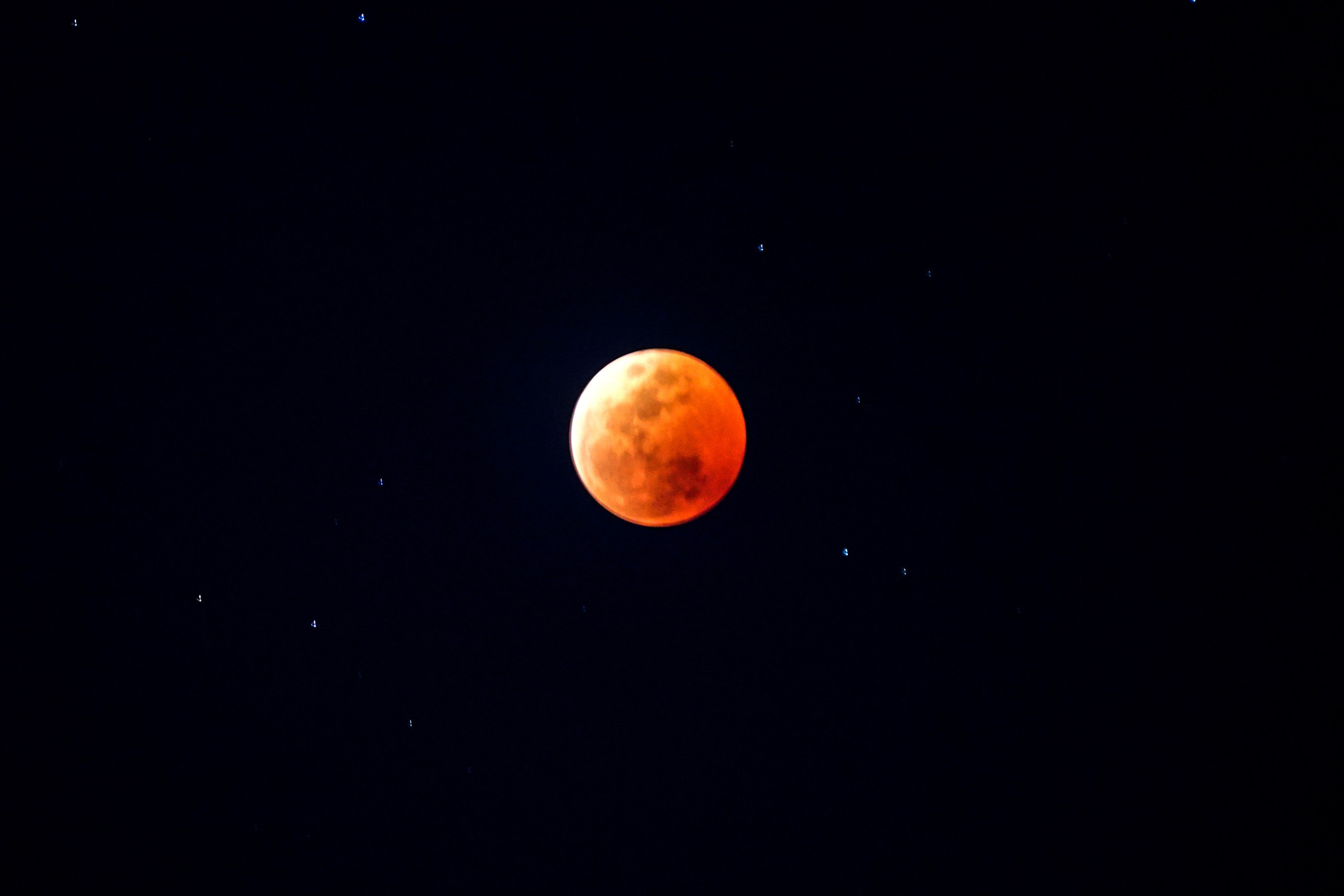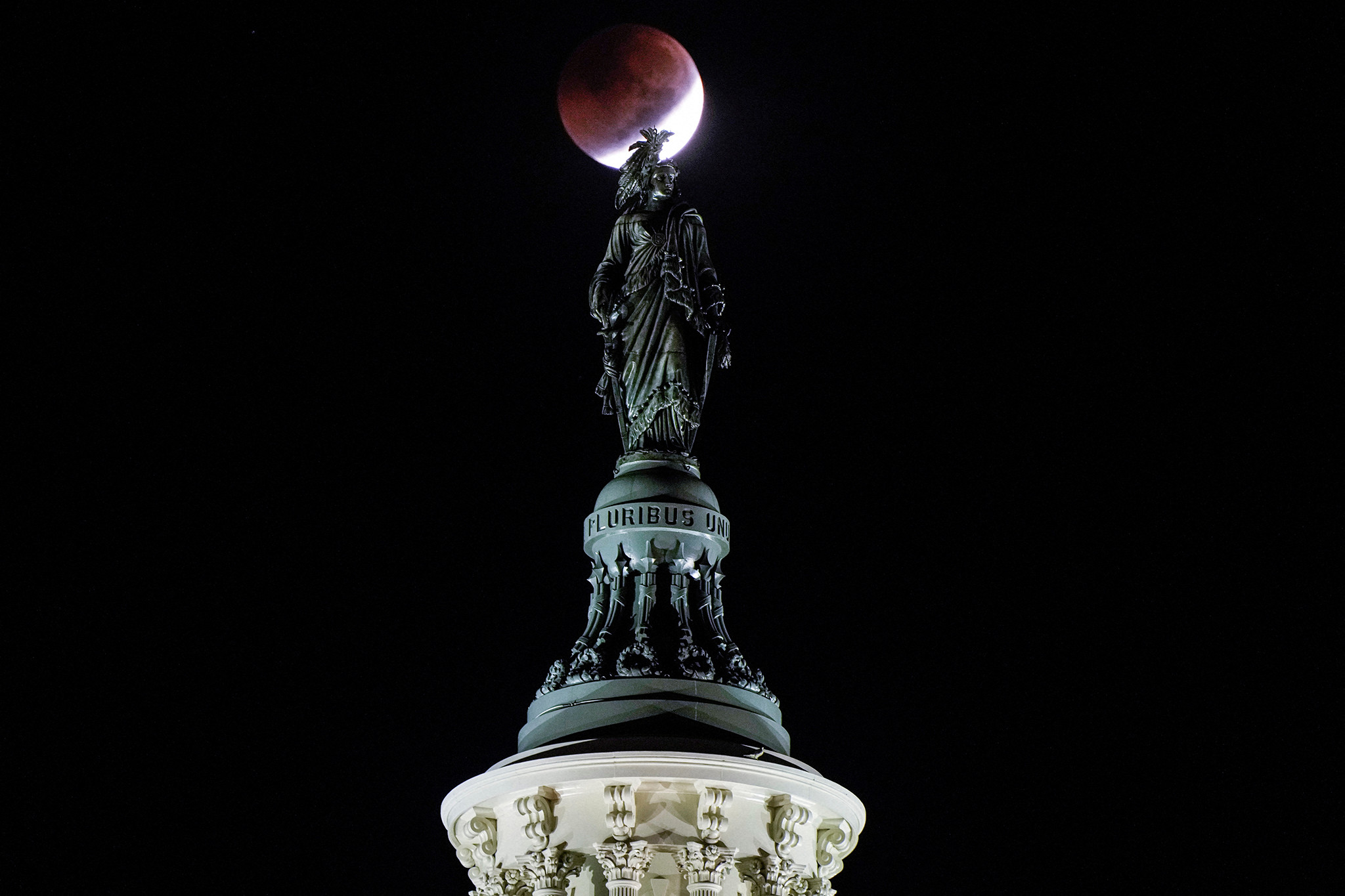 Tại Caracas, Venezuela. Nguyệt thực toàn phần là hiện tượng xảy ra khi Mặt Trời, Trái Đất và Mặt Trăng thẳng hàng. Đó là lúc Mặt Trăng sẽ bị bao phủ bởi bóng tối do ánh sáng từ Mặt Trời đã bị cản lại bởi Trái Đất. Ảnh: Reuters.