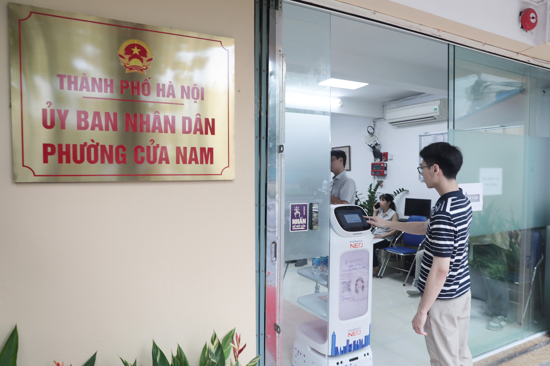 Tác phẩm “Robot làm nhân viên AI phục vụ hành chính công tại Hà Nội” đoạt giải Nhất hạng mục Ảnh bộ của tác giả Nguyễn Phú Khánh và Trần Thanh Giang.