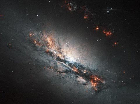 Một trong những cánh tay xoắn ốc của thiên hà NGC 2146 (nhỏ hơn dải Ngân hà của chúng ta một chút) đang cong gập một góc 45 độ. Nguyên nhân của hiện tượng này được cho là do lực hấp dẫn của một thiên hà không xác định gần đó đang gây nhiễu loạn cánh tay của NGC 2146, khiến nó bị oằn cong.