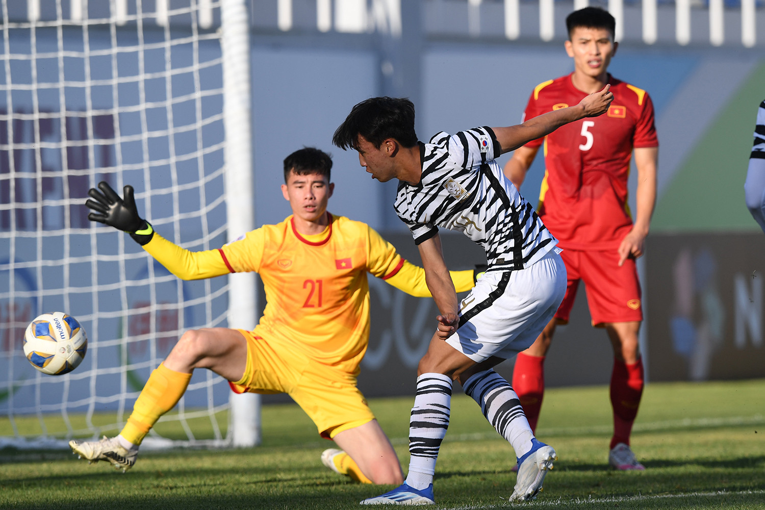 Dù bị đánh giá yếu hơn nhiều nhưng U23 Việt Nam chơi một trận đầy kiên cường trước ĐKVĐ U23 Hàn QuốcU23 Hàn Quốc gặp rất nhiều khó khăn trong việc tìm đường vào khung thành thủ môn Quan Văn ChuẩnU23 Hàn Quốc có bàn thắng vượt lên dẫn trướcNhưng tấm thẻ đỏ đã tạo nên bước ngoặt của trận đấu. Chơi hơn người, U23 Việt Nam tràn lên tấn công để tìm bàn gỡPhút 83, Phan Tuấn Tài với quả tạt chìm loại bỏ toàn bỏ hàng phòng ngự U23 Hàn Quốc để Vũ Tiến Long băng lên tung cú sút căng như kẻ chỉ không có thủ môn Dong Min Goh một cơ hội cản pháThủ môn U23 Hàn Quốc bó tay trước pha nã đại bác của Tiến LongBàn thắng để đời của cầu thủ mang áo số 6Tiến Long ăn mừng đầy cảm xúcGiành 1 điểm trước U23 Hàn Quốc là một kết quả nằm ngoài dự đoán của người hâm mộNhưng U23 Việt Nam xứng đáng có được kết quả nàyNiềm vui của các CĐV Việt Nam.