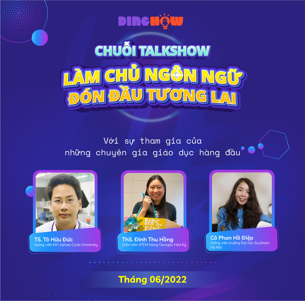 Nhiều bậc cha mẹ ngày từ khi con còn nhỏ đã định hướng cho trẻ tiếp xúc với tiếng Anh với mong muốn con trở thành công dân toàn cầu, nhưng học thế nào để con phát huy không chỉ khả năng ngoại ngữ mà còn hình thành và phát triển kỹ năng tư duy cần thiết khác ứng dụng trong cuộc sống? Câu trả lời sẽ được hé lộ qua chuỗi Dino Talk sẽ được lên sóng trực tiếp trên fanpage Dino How.