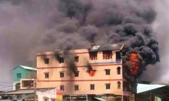Khoảng 11h ngày 23/3, căn nhà 5 tầng có địa chỉ số 32 đường Kim Biên phường 13, quận 5 (TP.HCM) chìm trong biển lửa. Khói đen bốc nghi ngút, tỏa rộng khắp khu vực.
