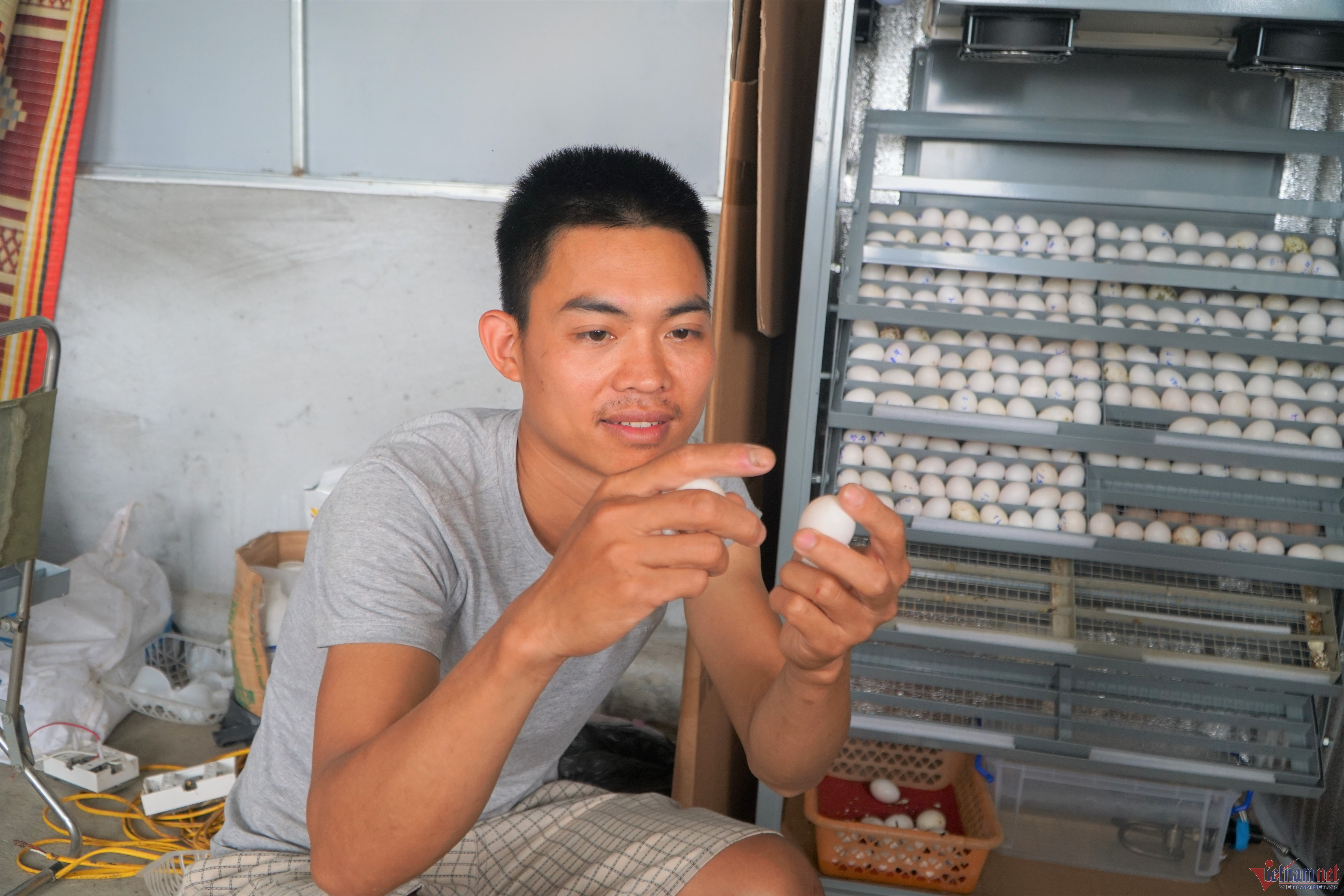 Cũng theo anh Chinh, chim bồ câu Pháp mái sau 5 tháng bắt đầu đẻ trứng, trung bình 4 ngày chim đẻ 2 trứng, mỗi con đẻ khoảng 8 lứa/năm. Để đảm bảo trứng ấp nở tối đa, phải sử dụng máy ấp.