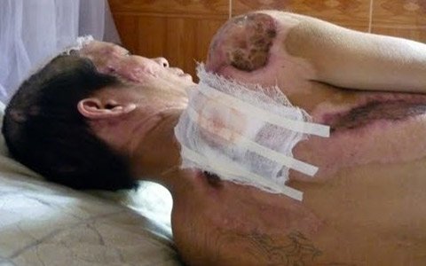 Học viên cai nghiện Võ Đình Dũng bị bỏng nặng điều trị tại bệnh viện. |