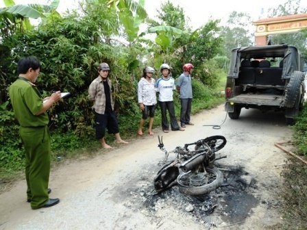 Hiện trường một vụ cẩu tặc bị đánh, đốt xe