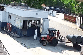 Sáng 19/3, Trọng điều khiển xe máy kéo chở theo rơ moóc chứa 3 cuộn vải bạt nặng hơn 4 tấn, di chuyển trong khuôn viên công ty. Khi chuyển hướng để vào cổng xưởng, Trọng không giảm tốc độ, dẫn đến rơ moóc nghiêng về một bên.
