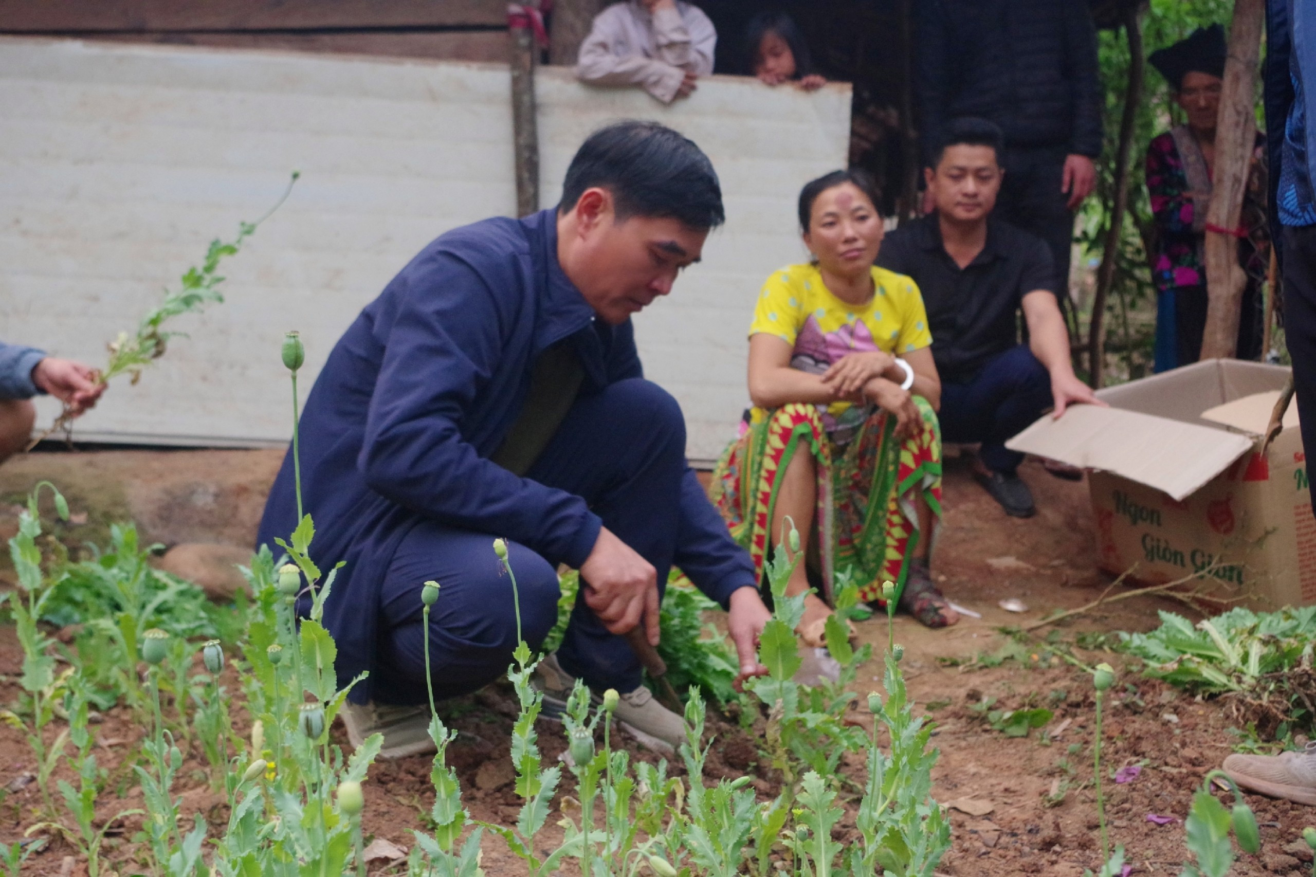 Trước đó, vào ngày 11/3, Đội Cảnh sát Điều tra tội phạm về ma túy - kinh tế -môi trường Công an huyện Mường Tè phối hợp cùng Công an xã Tà Tổng, phát hiện trong vườn phía sau nhà của Hạng Thị Cá đang trồng 585 cây thuốc phiện.