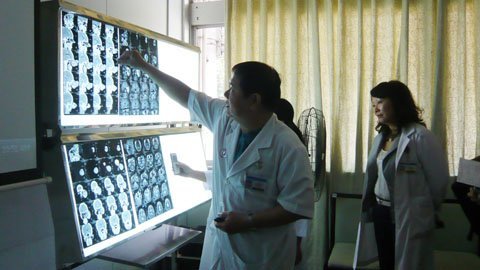 Sau khi chẩn đoán hình ảnh, các bác sĩ kết luận khối u trên hốc mắt của bệnh nhi là u giả hốc mắt trên nền bệnh Hemophilia. Ngoài ra bệnh nhi còn bị thông liên thất vùng phễu.