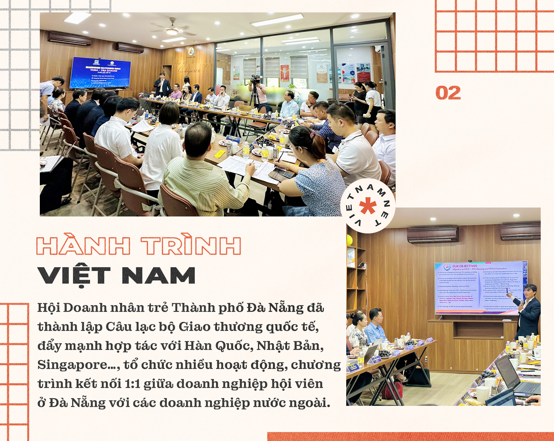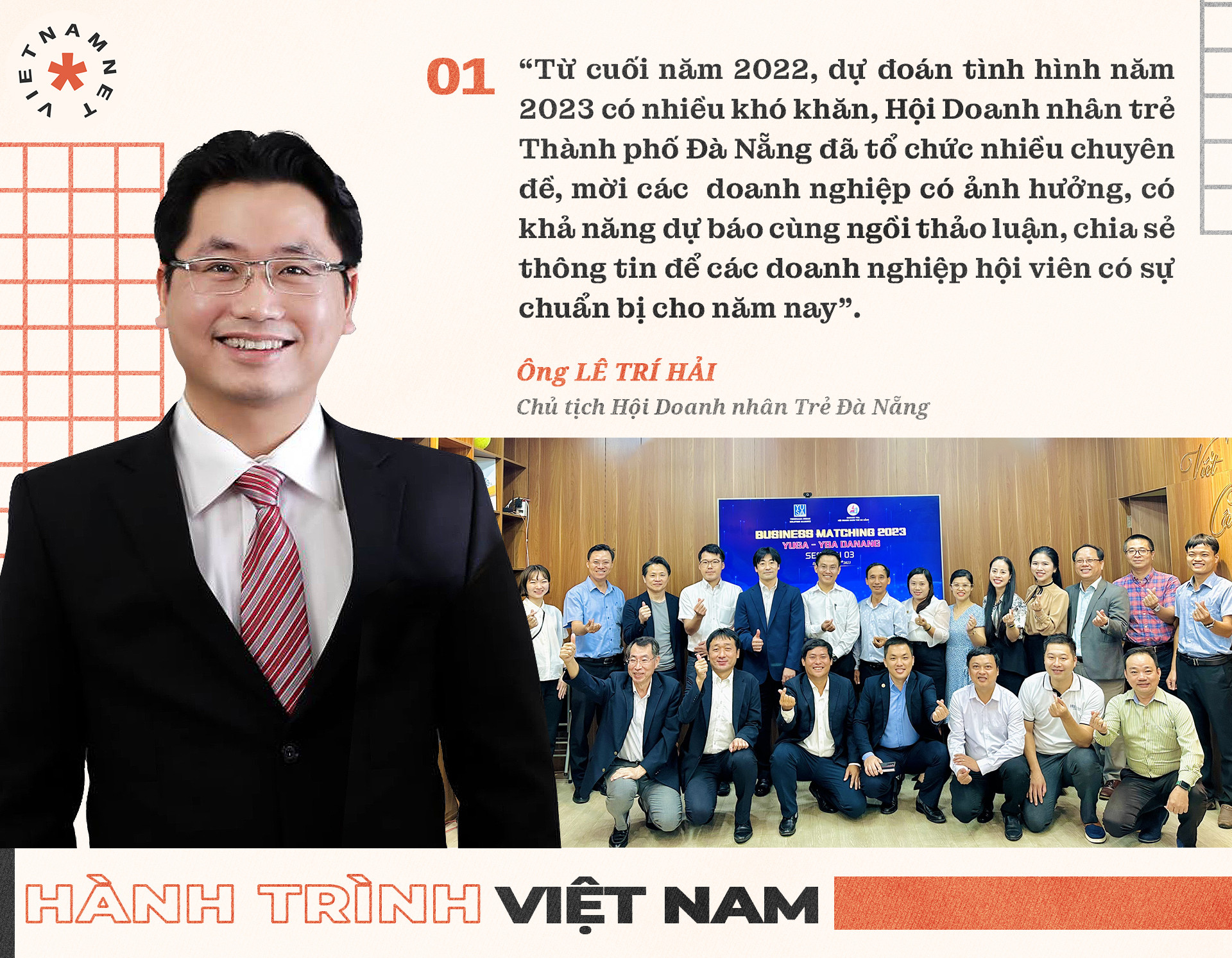 “Bắt đầu từ nhiệm kỳ VII (2021 – 2024), Hội Doanh nhân trẻ Thành phố Đà Nẵng đã thành lập Câu lạc bộ Giao thương quốc tế, đẩy mạnh hợp tác với Hàn Quốc, Nhật Bản, Singapore…, tổ chức nhiều hoạt động, chương trình kết nối 1:1 giữa doanh nghiệp hội viên ở Đà Nẵng với các doanh nghiệp nước ngoài. Nhiều đối tác nước ngoài sau khi hợp tác hiệu quả lần một đã quay lại thêm nhiều lần nữa. Điển hình như Nhật Bản. Sáng 12/7 vừa qua, một đoàn Nhật Bản đã quay lại làm việc với Hội Doanh nhân trẻ Đà Nẵng, và thêm 1 hợp đồng của doanh nghiệp Nhật với công ty Việt đã được ký kết. Ngoài công nghệ thông tin, chúng tôi còn hỗ trợ kết nối kinh doanh với nhiều lĩnh vực khác như công nghiệp phụ trợ”, ông Hải cho biết.