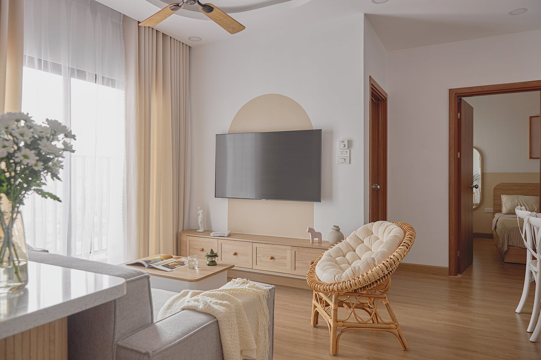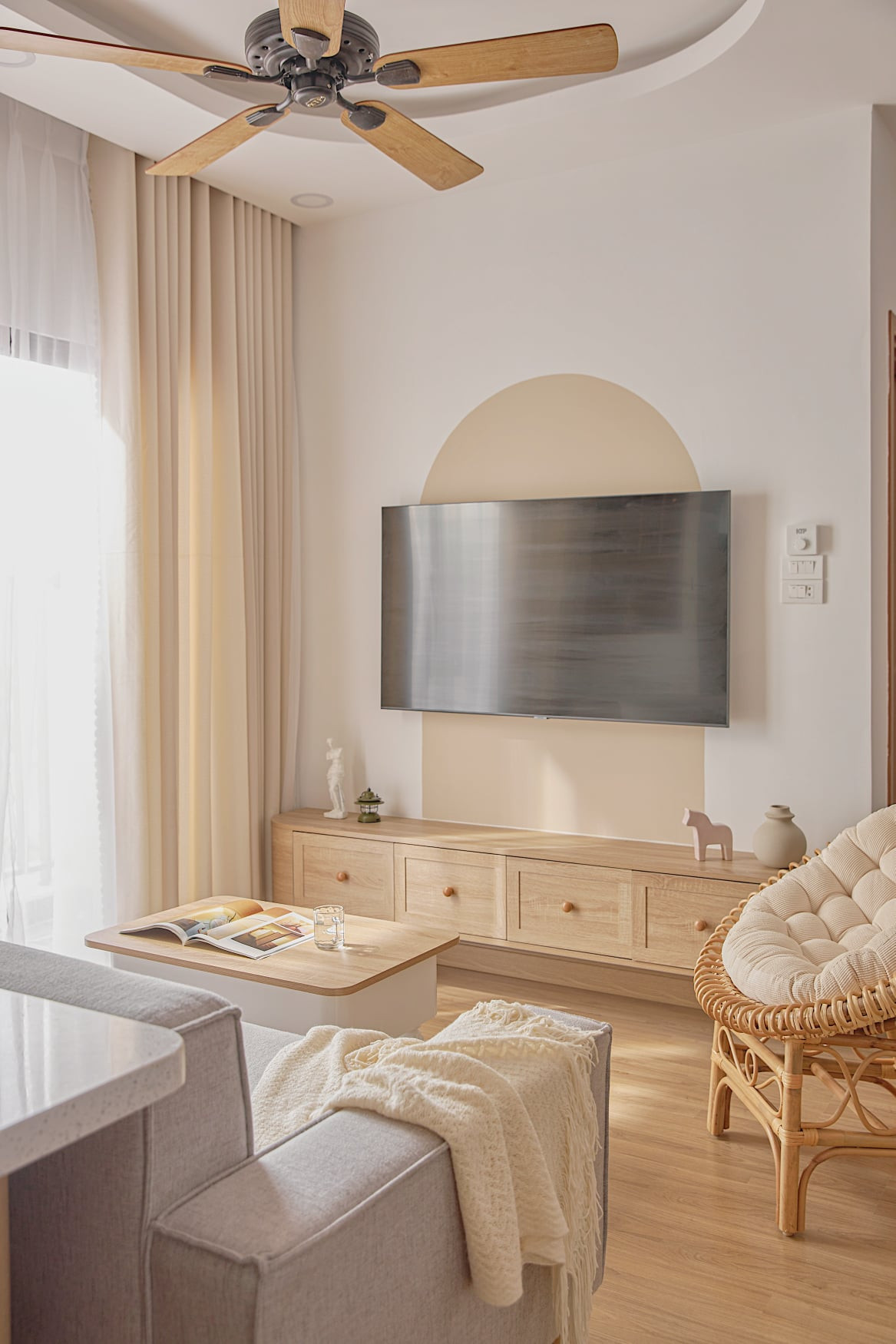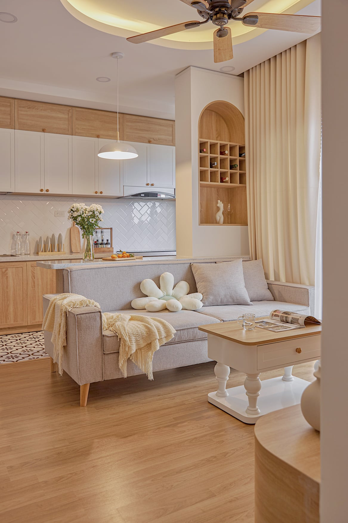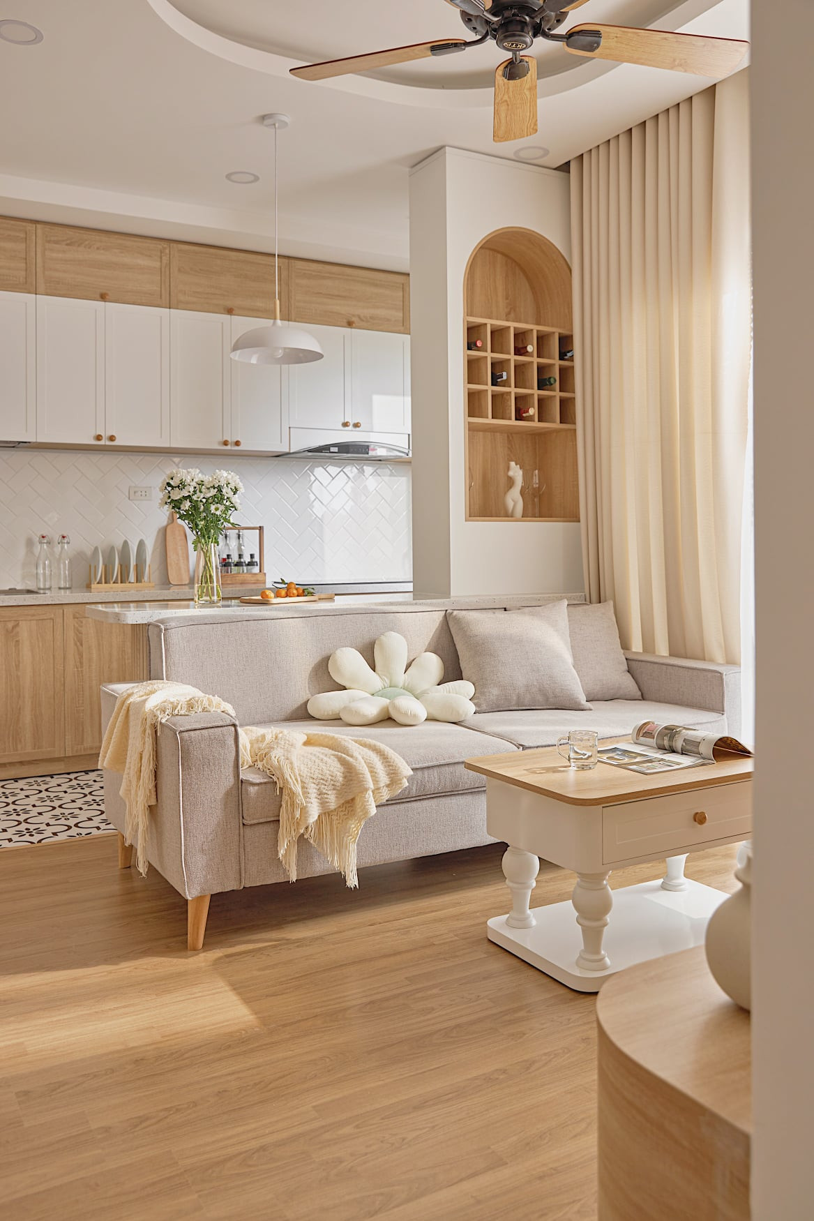 Màu sắc trung tính, nhẹ nhàng thể hiện tích cách nhẹ nhàng của gia chủ. Trong đây có một chút Bắc Âu, một chút hiện đại, một chút vintage.