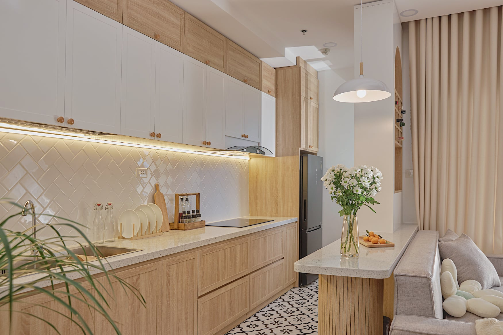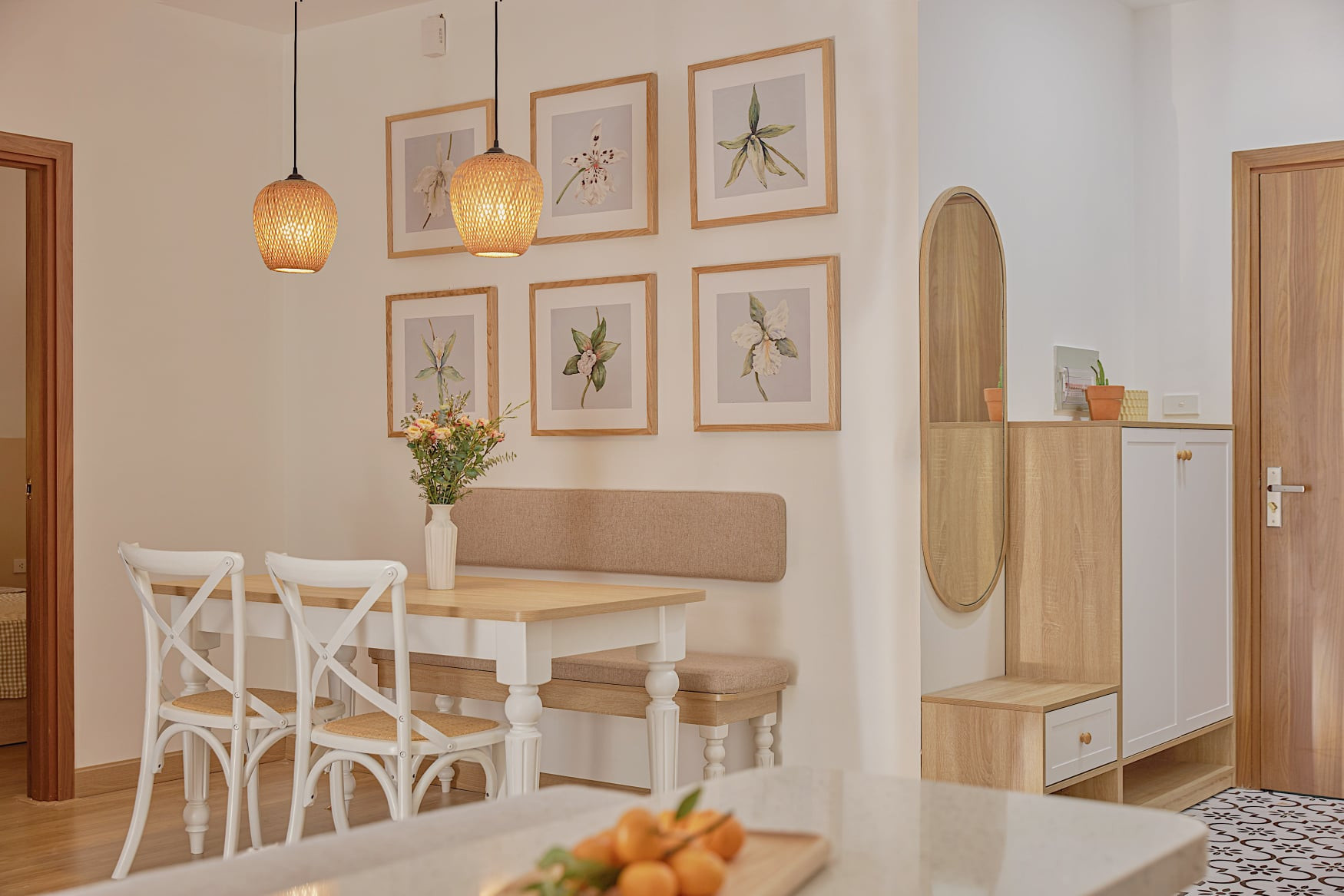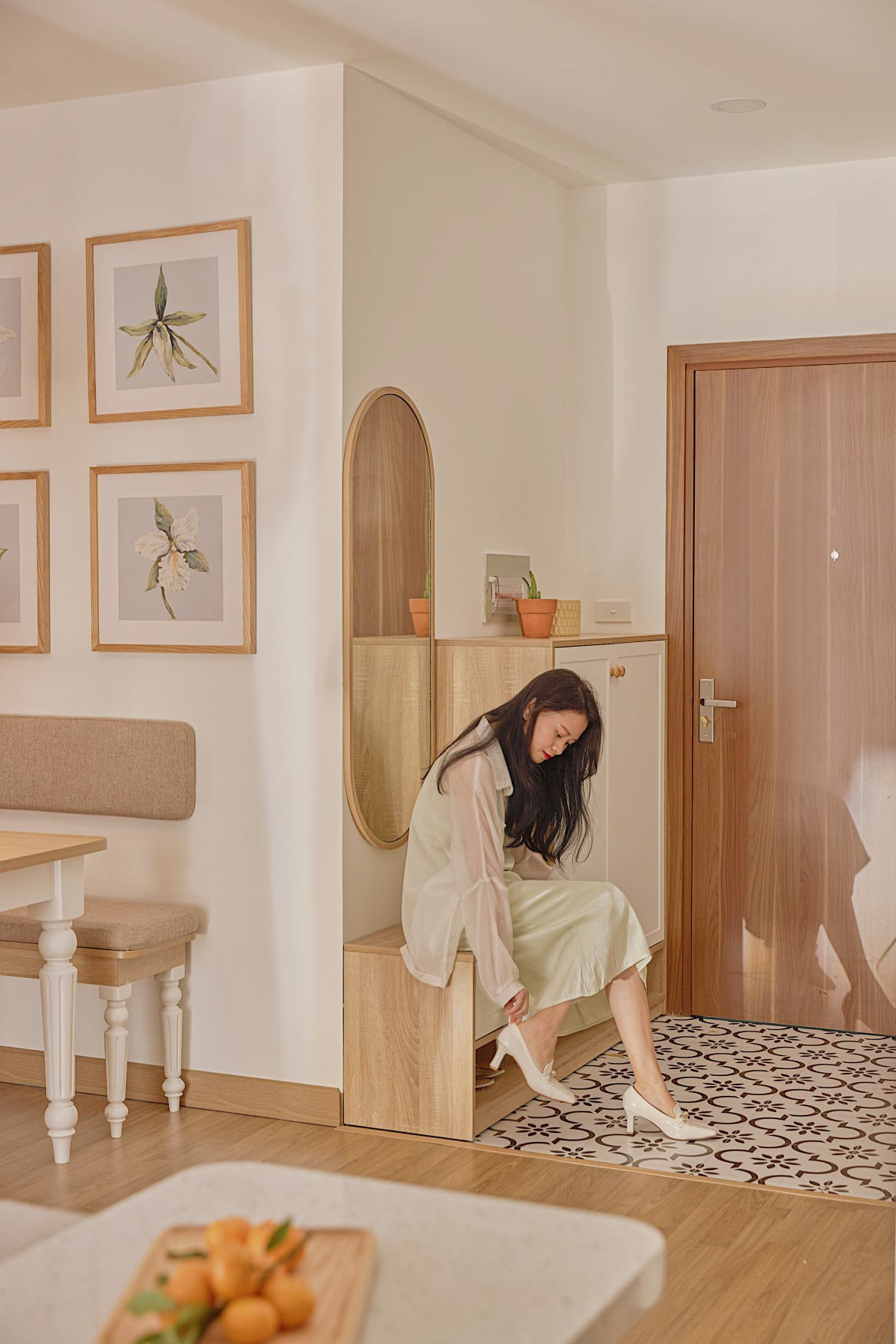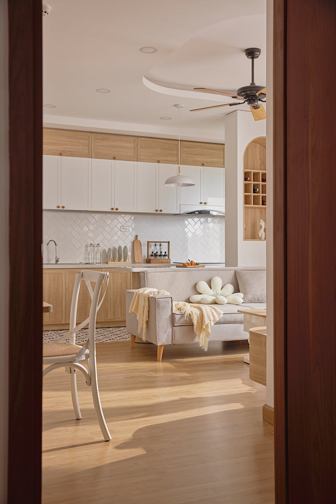 Màu sắc trung tính, nhẹ nhàng thể hiện tích cách nhẹ nhàng của gia chủ. Trong đây có một chút Bắc Âu, một chút hiện đại, một chút vintage.