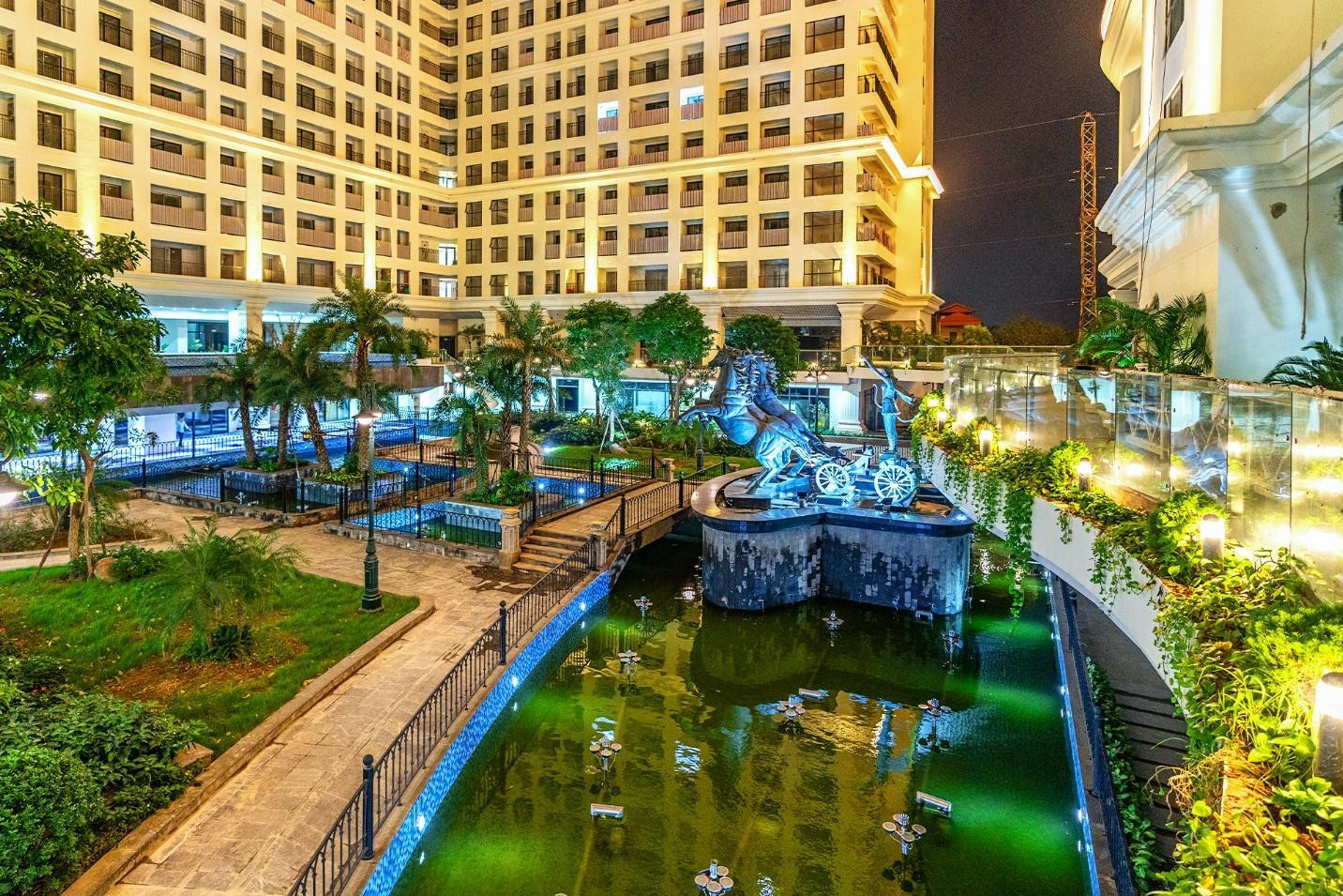 Điểm nhấn tại dự án chính là khu vườn xanh mát trong nội khu còn được tô điểm với hệ thống ánh sáng đèn led rực rỡ, khiến cho không gian bừng lên như một “Châu Âu thu nhỏ” trong lòng Hà Nội.