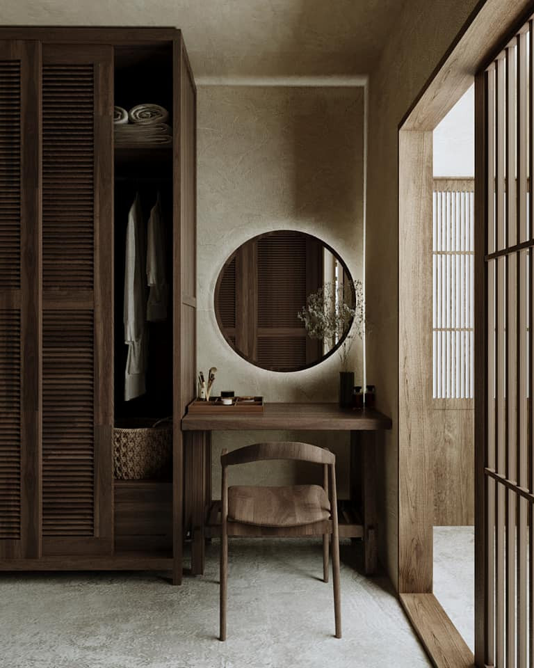 Khu vực phòng ngủ hiện đại, chia ra nơi nghỉ ngơi và nơi thay đồ.