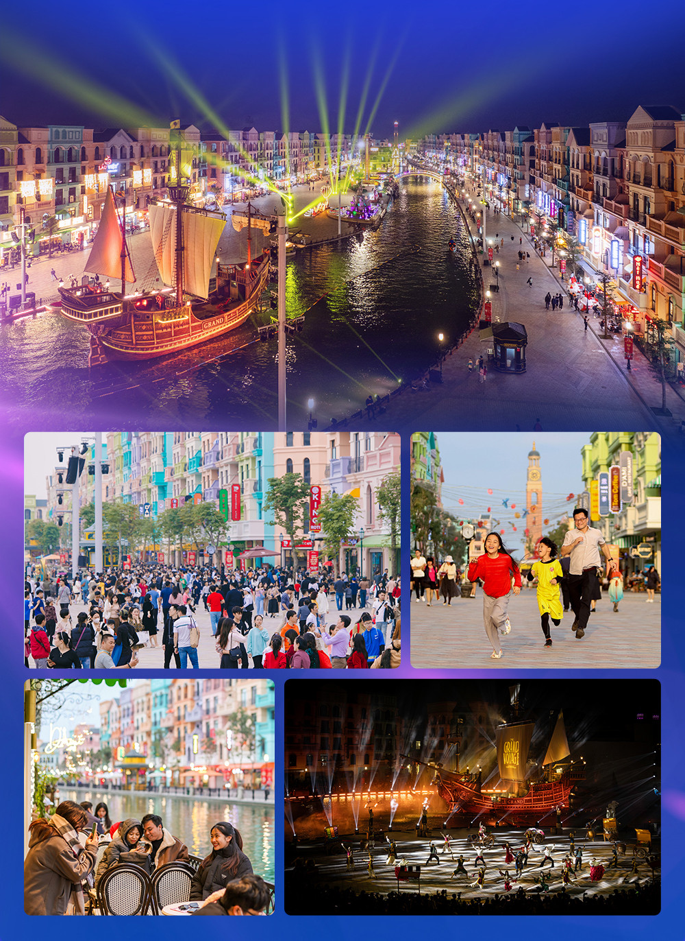 Điều hấp dẫn du khách khi bước chân vào “siêu vũ trụ giải trí” trong lòng Ocean City là được hòa mình vào 2 dòng chảy văn hóa Đông - Tây. Đó là hành trình du ngoạn trên chiếc thuyền Gondola, xuôi dòng kênh đào dài 830m giữa phố The Venice, đắm chìm trong không gian lãng mạn, kiến trúc lộng lẫy, thưởng thức những tiết mục âm nhạc châu Âu ngẫu hứng, hòa vào không khí lễ hội sôi động hai bên bờ…