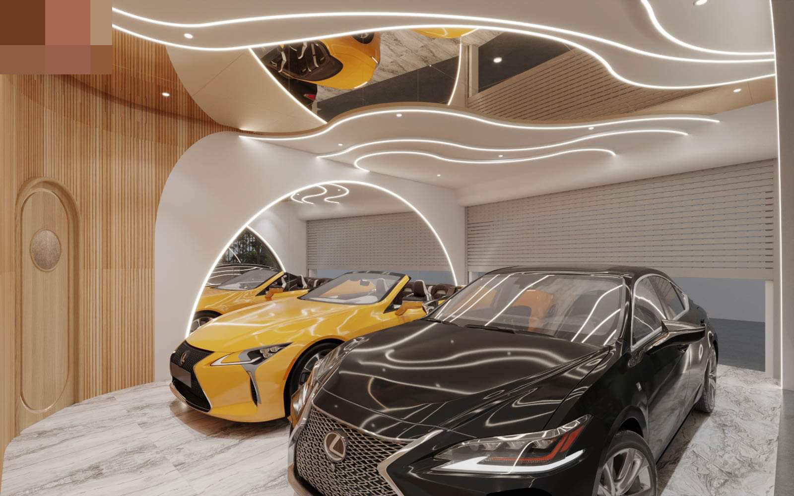 Gara được chăm chút tỉ mỉ, trưng bày bộ sưu tập xe của gia chủ.