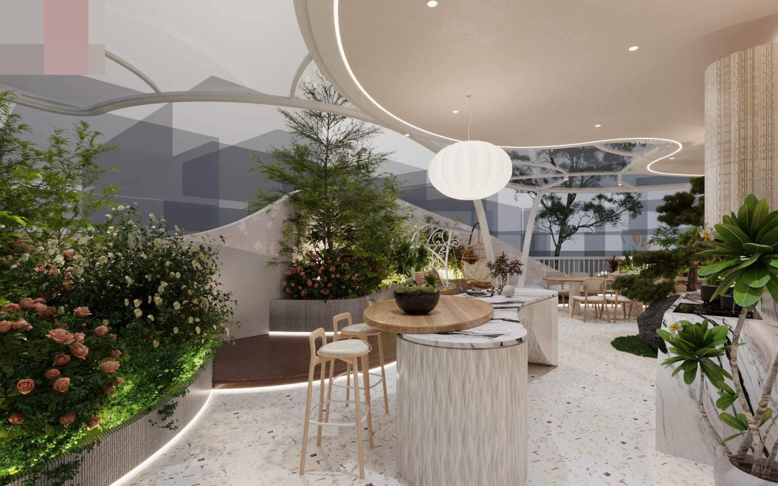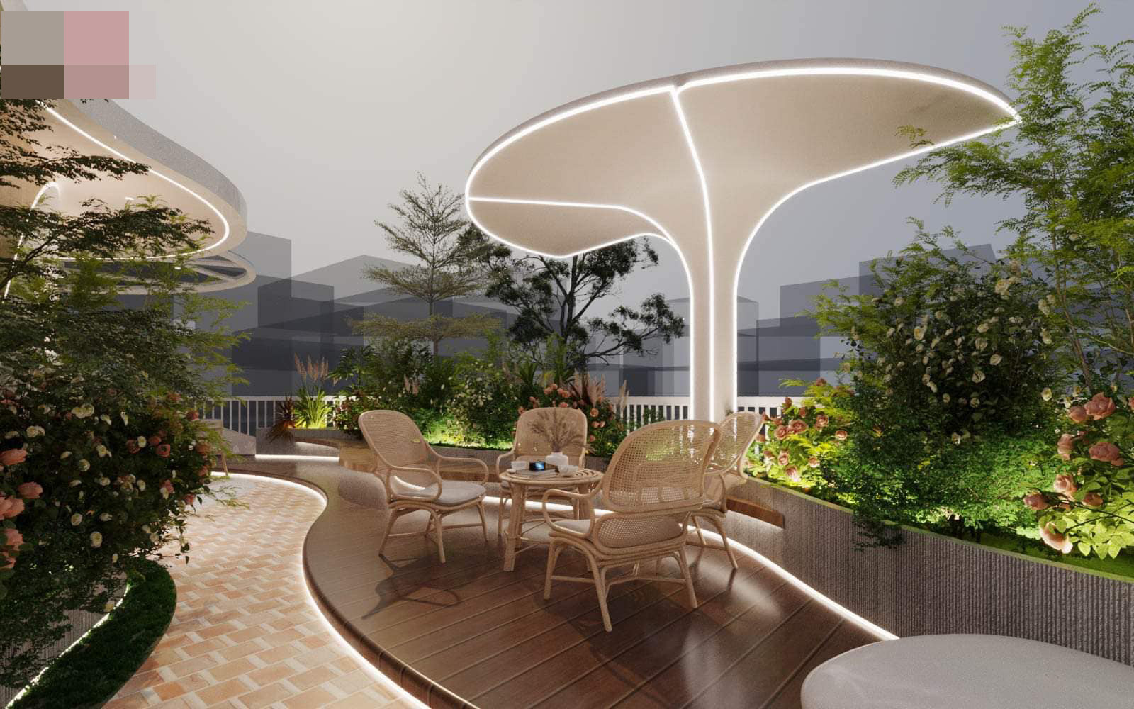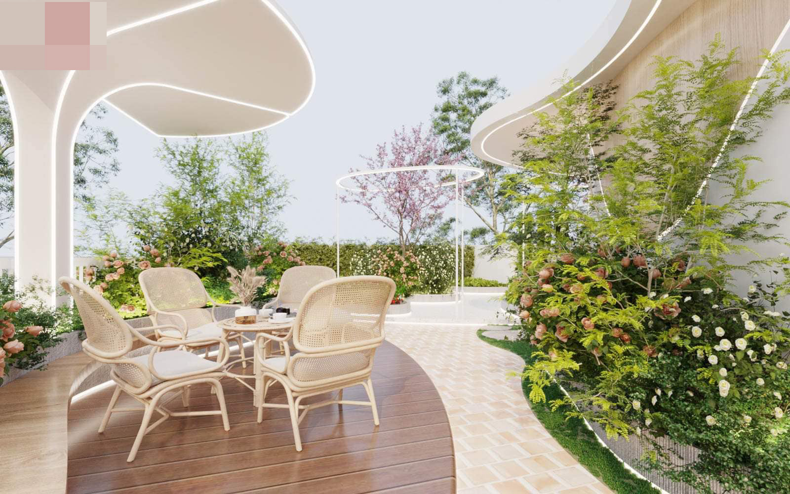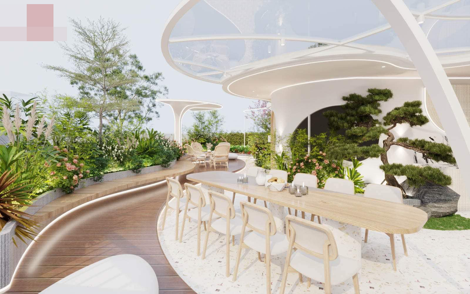 Vườn sân thượng đẹp nức lòng, không chỉ là nơi uống trà mà còn là khu vực tổ chức tiệc BBQ rộng rãi, sang trọng và thời thượng.