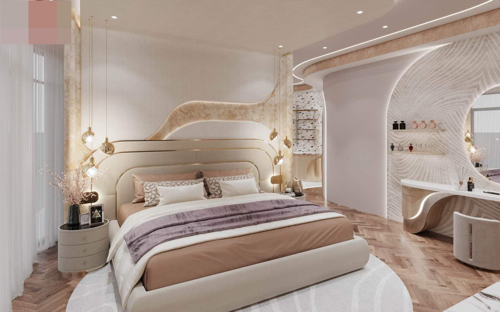 Khu vực nghỉ ngơi, thả lỏng cơ thể sau ngày dài bận rộn. Màu sắc trang nhã, nhẹ nhàng để tạo giấc ngủ ngon cho mọi người.