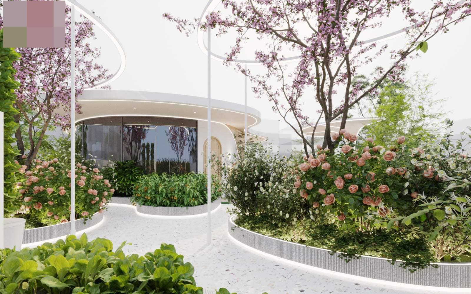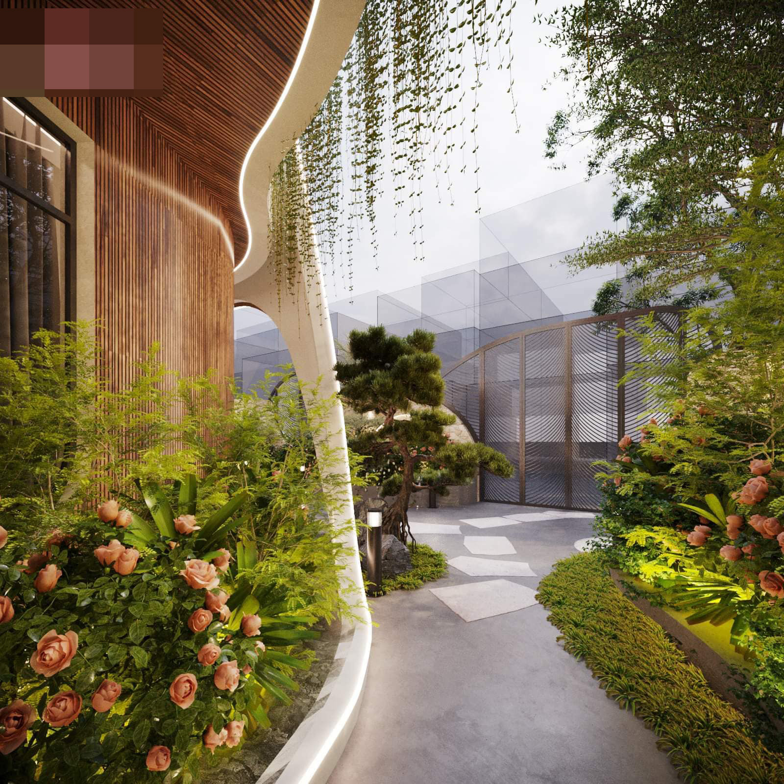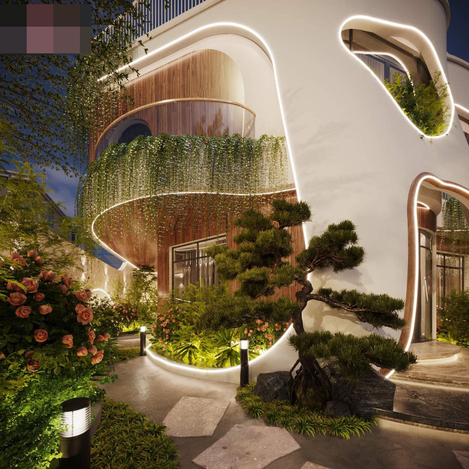 Biệt thự màu trắng với những hình khối bo cong, khu vườn rực rỡ, đẹp như resort là một sản phẩm kiến trúc sư Đỗ Nguyễn Anh Quý cùng cộng sự mới hoàn thành.