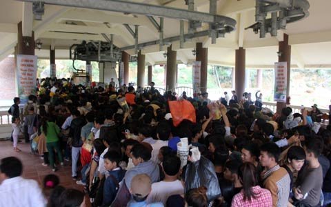 Do lượng du khách đổ về quá đông nên đã gây ra tình trạng ách tắc cục bộ, đặc biệt tại khu cáp treo. Khoảng 10h sáng, BQL khu di tích đã buộc phải thông báo tạm thời ngừng bán vé để giải quyết tình trạng ách tắc.