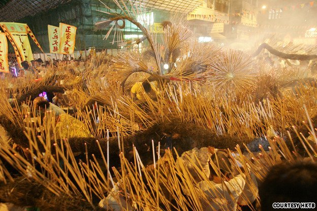 | Một con rồng dài 67 m được làm từ 72.000 que hương tại Đại Hàng, Hồng Kông. |