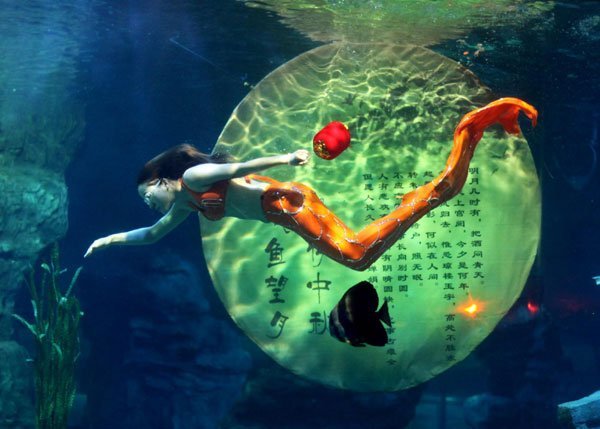 Lễ hội Trung thu dưới nước tại Vũ Hán, Hồ Bắc,