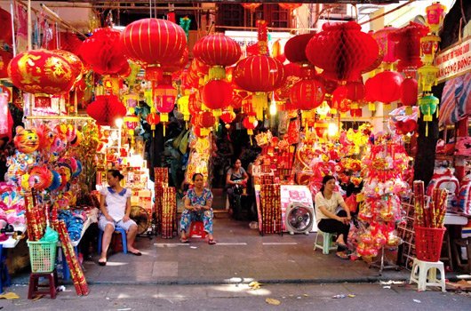 Đèn lồng được bày bán trên đường phố Hồng Kông |