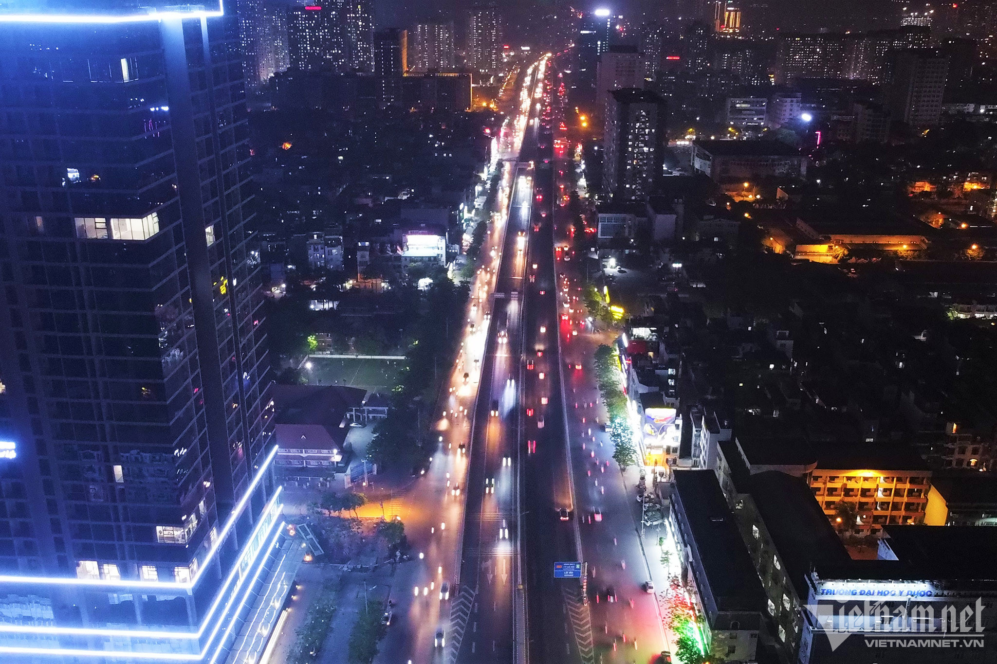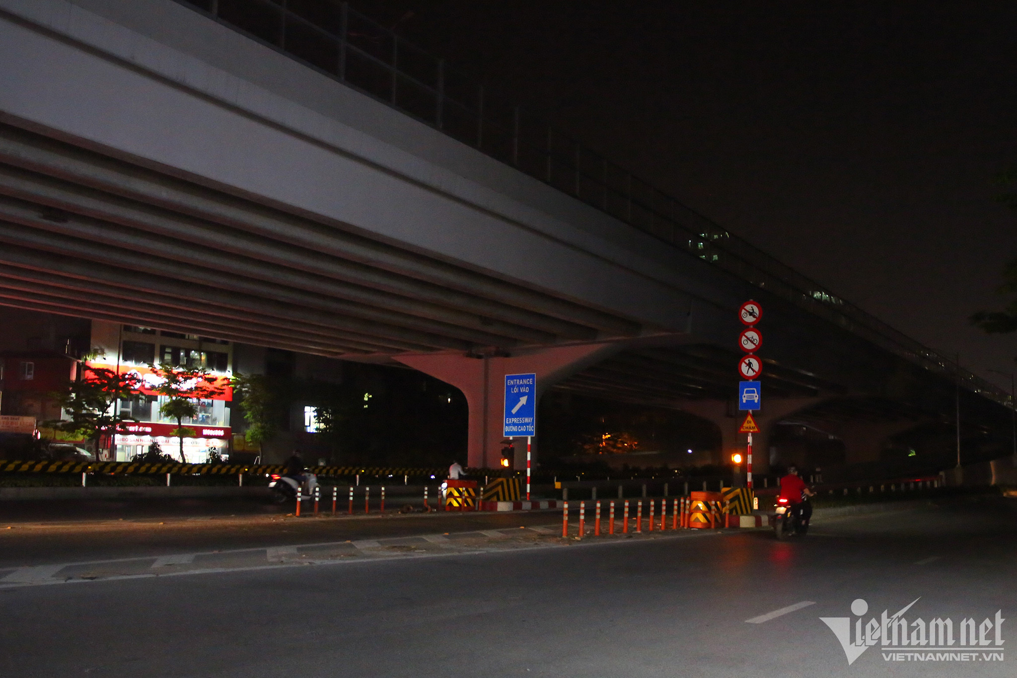 Theo ghi nhận vào tối 13/4, toàn bộ hệ thống đèn chiếu sáng ở đường Vành đai 3 trên cao, đường Phạm Văn Đồng đều không được bật.