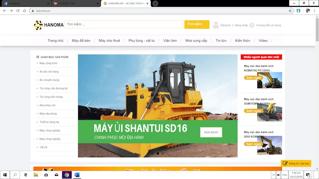 Hiện chúng tôi đã kết nối hơn 1000 công ty bán, cho thuê máy móc cũ mới trên Hanoma. Hầu hết đây là những doanh nghiệp bán và cho thuê máy móc cũ. Đây là thị trường rất lớn cho Hanoma phát triển.