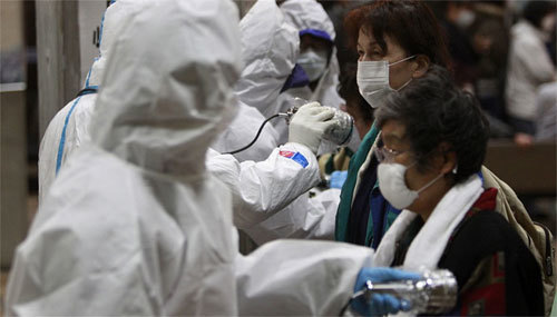 | Kiểm tra phóng xạ tại một trung tâm di tản ở Nhật. Ảnh: AP. |