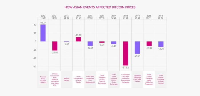 Công cho biết 11 tin tức lớn đến từ châu Á tác động đến 18,61% giá Bitcoin. Quan trọng nhất là từ đầu năm, Coinmarketcap đã xóa dữ liệu khỏi các sàn giao dịch Hàn Quốc. Theo Mosaic điều này đã làm sai lệch 57% thị trường.
