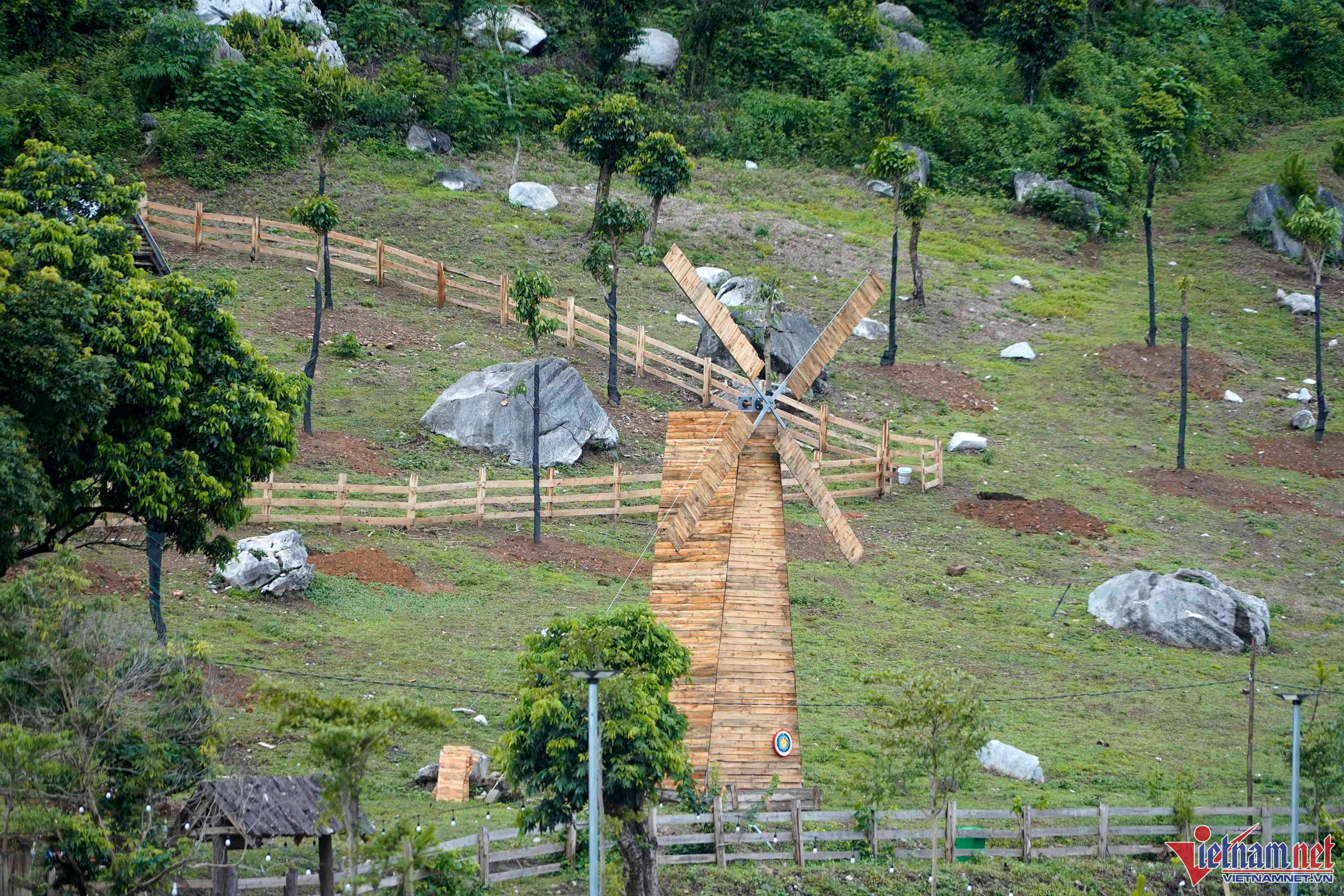 Tại đây có một nhà sàn bằng gỗ, khu vực cắm lều trại, các lều dựng tạm lợp ngói để ngồi ăn uống và khu chuồng nuôi dê, cừu.