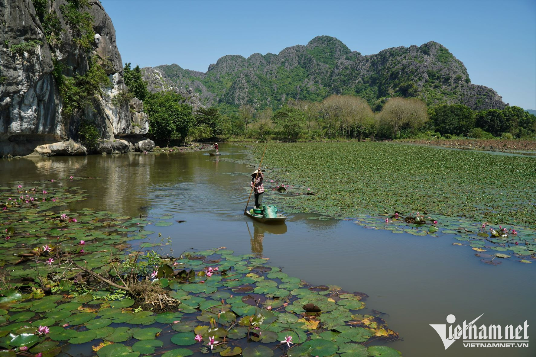 Khu danh thắng Kim Sơn ở xã Vĩnh An, huyện Vĩnh Lộc (Thanh Hóa) đang là điểm hút khách du lịch bởi vẻ đẹp tự nhiên của núi rừng và suối hoa súng chảy dài hơn 3km.