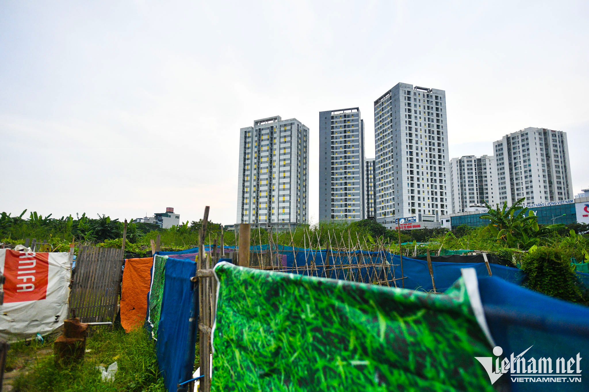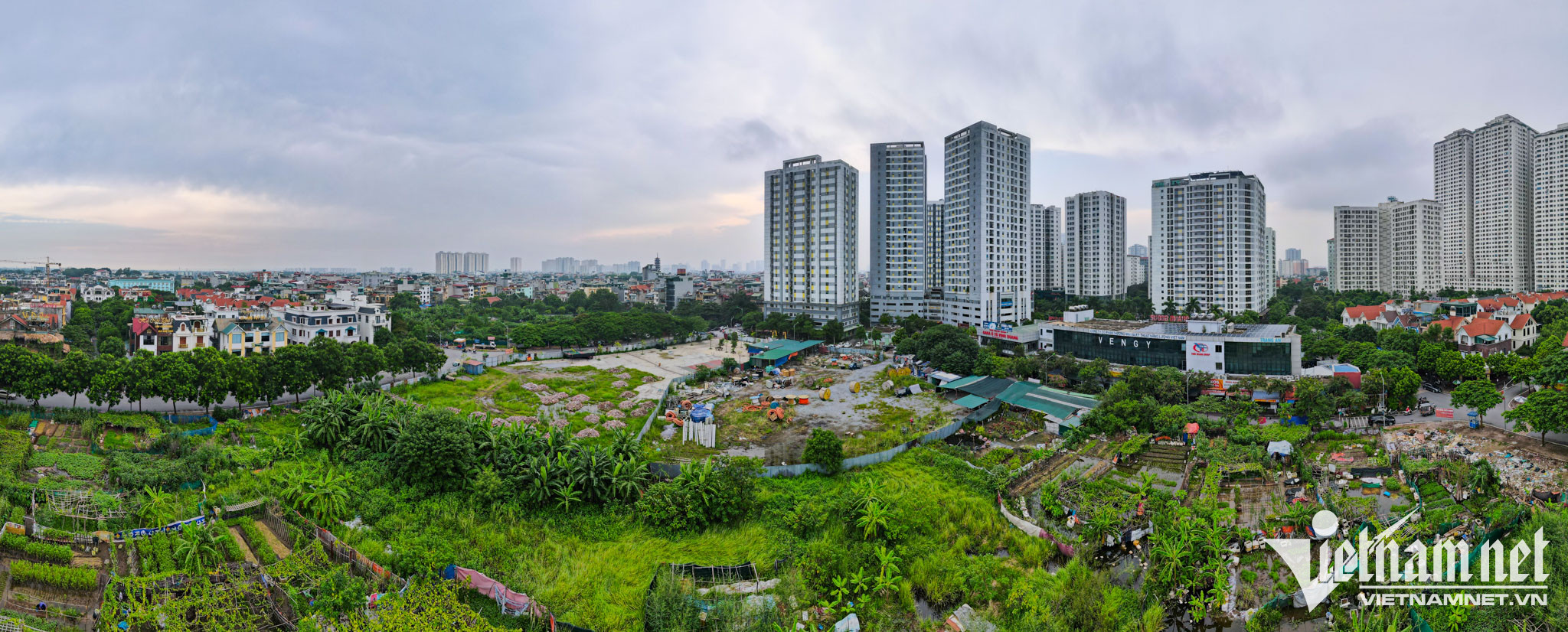 Đến nay, Tổng công ty HUD đã triển khai thực hiện xong các ô đất ở xây dựng mới, nhưng vẫn còn lại 33/86 (38%) ô đất công cộng, hạ tầng xã hội, hạ tầng kỹ thuật chưa triển khai xây dựng. Những khu đất vàng sau thời gian dài vẫn nằm im bất động hoặc làm bãi đỗ ô tô.Một vài hộ dân canh tác, trồng rau ngắn hạn ngay trên nền đất quy hoạch trong thời gian này.Cỏ dại mọc um tùm tại những khu đất có vị trí đẹp.Sau thời gian triển khai, nhiều khu đất nghĩa trang được lên kế hoạch quy hoạch để trở thành đất xây dựng trường học. Tuy nhiên vì “khó” di dời, việc thi công cũng chậm tiến độ, những ngôi trường hiện vẫn nằm trên giấy tờ.Một nghĩa trang với hàng nghìn ngôi mộ ở khu Tây Nam Linh Đàm (phường Hoàng Liệt) đã được quy hoạch thành dự án trường học.“Dân cư quá đông đúc, chủ yếu là các gia đình trẻ có con trong tuổi đi học nên nhu cầu về trường lớp cho các cháu rất cao. Thực tế hiện nay một lớp học có nơi lên đến 40-50 học sinh thì làm sao đảm bảo chất lượng giảng dạy. Trong khi khu đất trống thì đầy ra nhưng họ cứ quy hoạch vào phần nghĩa trang khó giải tỏa thì chờ đợi đến bao giờ”, chị Bích Ngọc (cư dân sinh sống tại phường Hoàng Liệt) tâm sự.Chị Ngọc cho rằng chậm xây dựng chỉ là một vấn đề. Việc xây trường cho các con trên nền đất nghĩa trang lâu năm còn gây lo lắng cho các bậc phụ huynh vì vấn đề môi trường, nguồn nước không đảm bảo.Theo thống kê, dân số của phường Hoàng Liệt (trước khi lên phường) chỉ khoảng gần 12.000 người. Đến nay, con số này đã tăng lên thành 85.000 người, gấp 6-7 lần so với những phường khác và sẽ không có dấu hiệu dừng lại khi hàng loạt khu đô thị, khu nhà cao tầng trên địa bàn tiếp tục được xây dựng.Tại khu đô thị Pháp Vân - Tứ Hiệp, nhiều ô đất trường học cũng bị quy hoạch vào đất nghĩa trang, ao đình và chưa thể giải phóng được mặt bằng để triển khai xây dựng. Trong ảnh, một khu đất được quy hoạch xây trường học nhưng vẫn trong tình trạng bỏ hoang, cỏ dại mọc um tùm.Những khu đất xây dựng được quây tôn kín, bên ngoài thưa vắng người qua lại.Mới đây, cử tri tiếp tục đề nghị Bộ Xây dựng chỉ đạo, yêu cầu HUD khẩn trương bàn giao cho quận Hoàng Mai những ô đất xây dựng trường học, công cộng ở Khu đô thị Linh Đàm bởi vẫn chưa được đầu tư theo quy hoạch. Việc bàn giao này là để quận đưa vào đầu tư, quản lý phục vụ nhân dân trên địa bàn, tránh bỏ không, gây mất vệ sinh môi trường, mỹ quan đô thị và phát sinh các vi phạm về lấn chiếm đất đai.