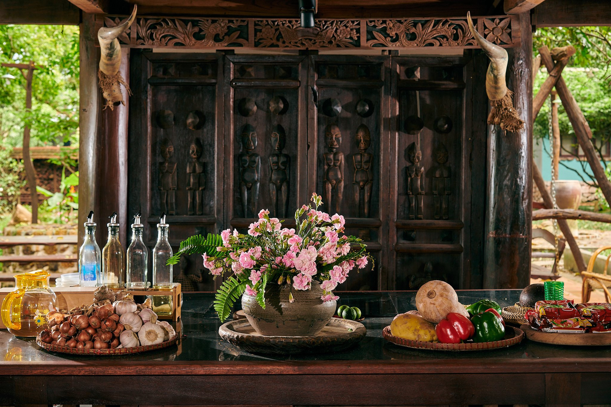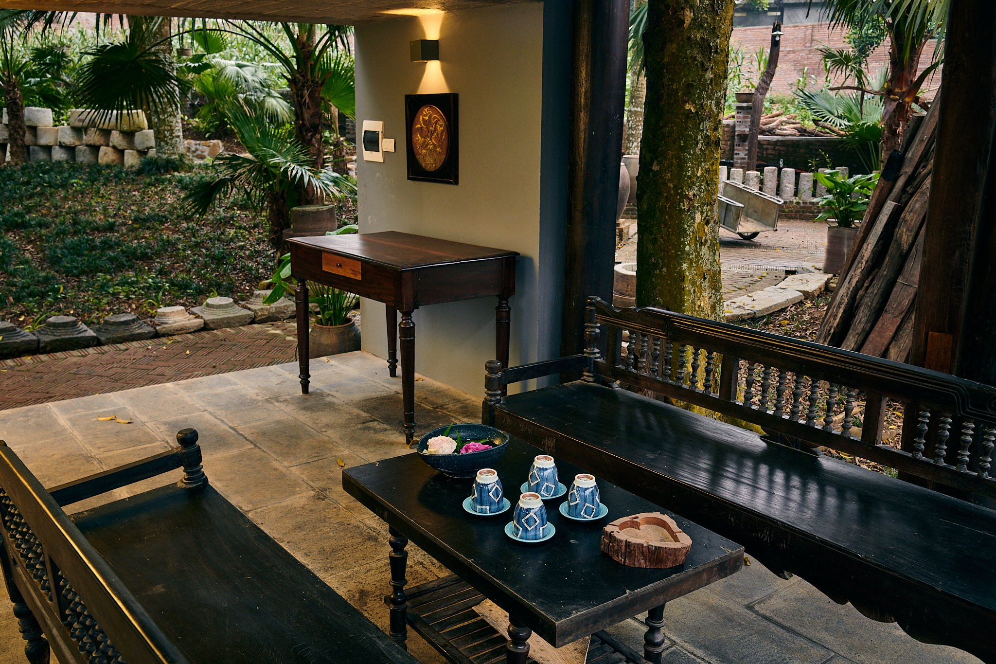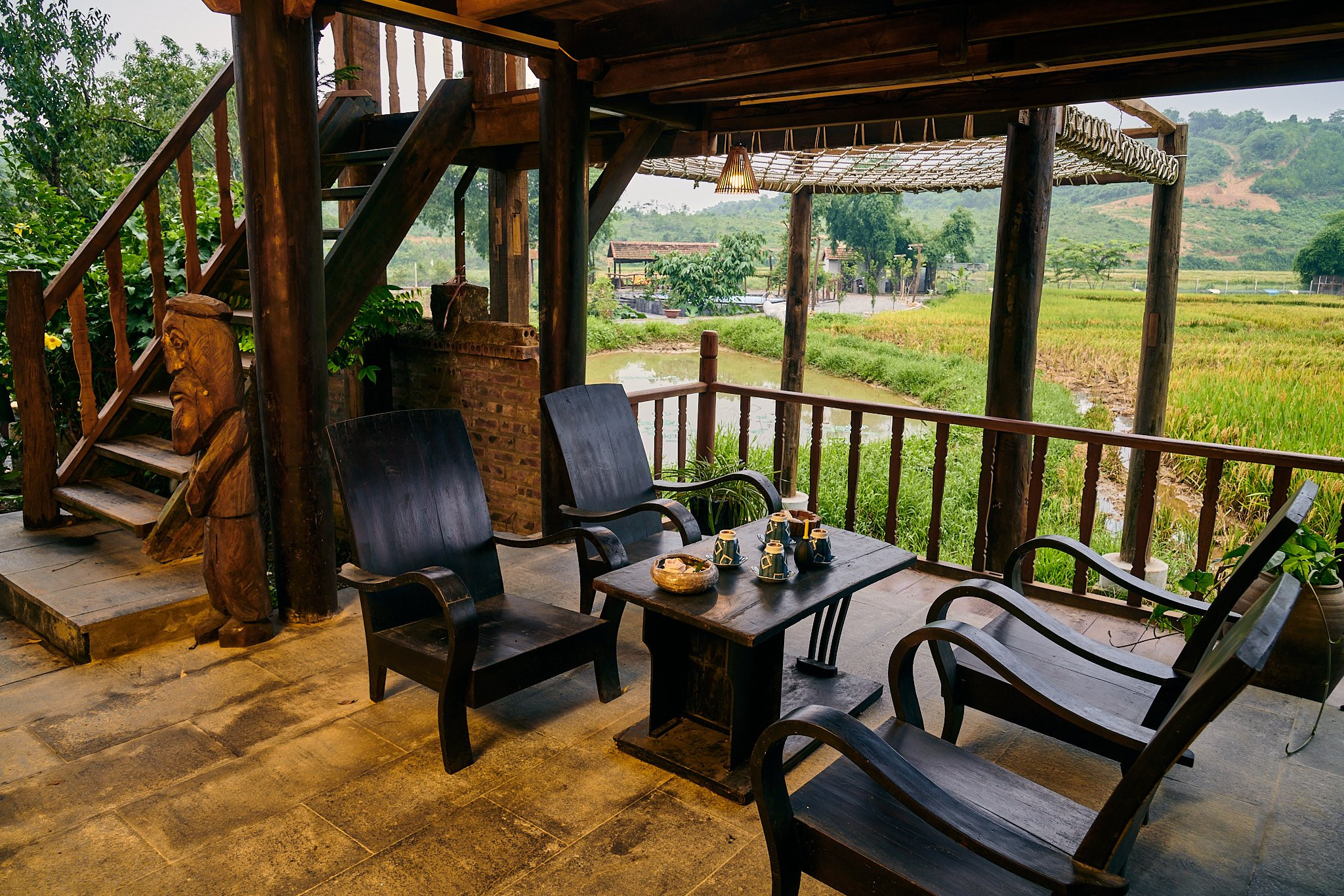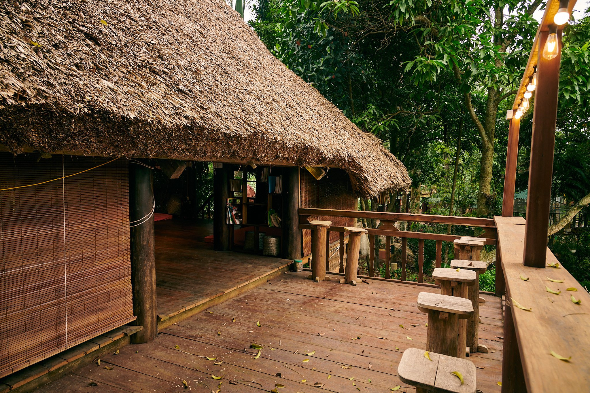 Cả khu đất được xây dựng trên tinh thần thuận theo tự nhiên, hạn chế tối đa việc chặt phá cây cối trong vườn, đồng thời tận dụng lại và tái chế những đồ đạc thủ công, thân thiện với thiên nhiên.