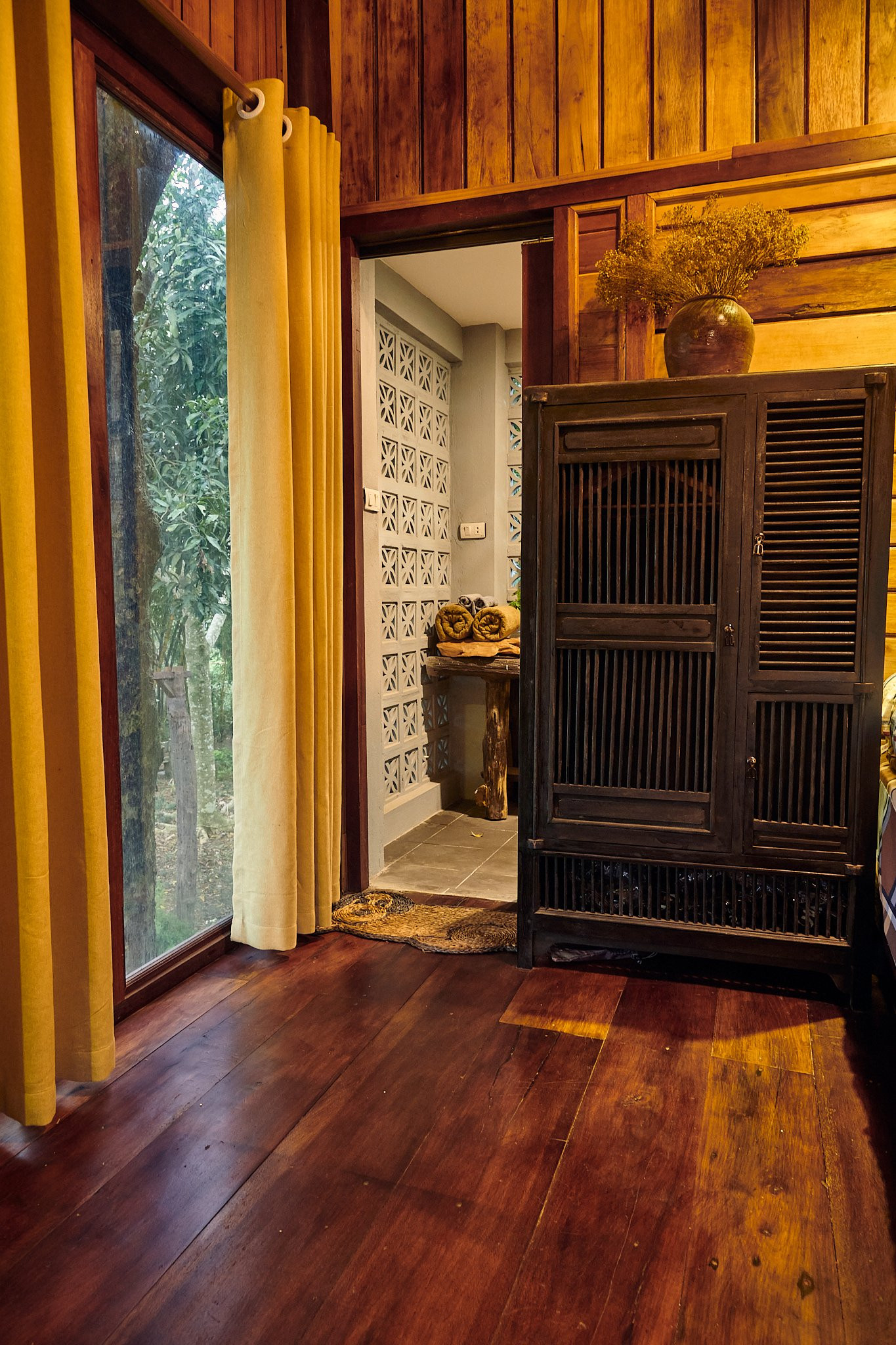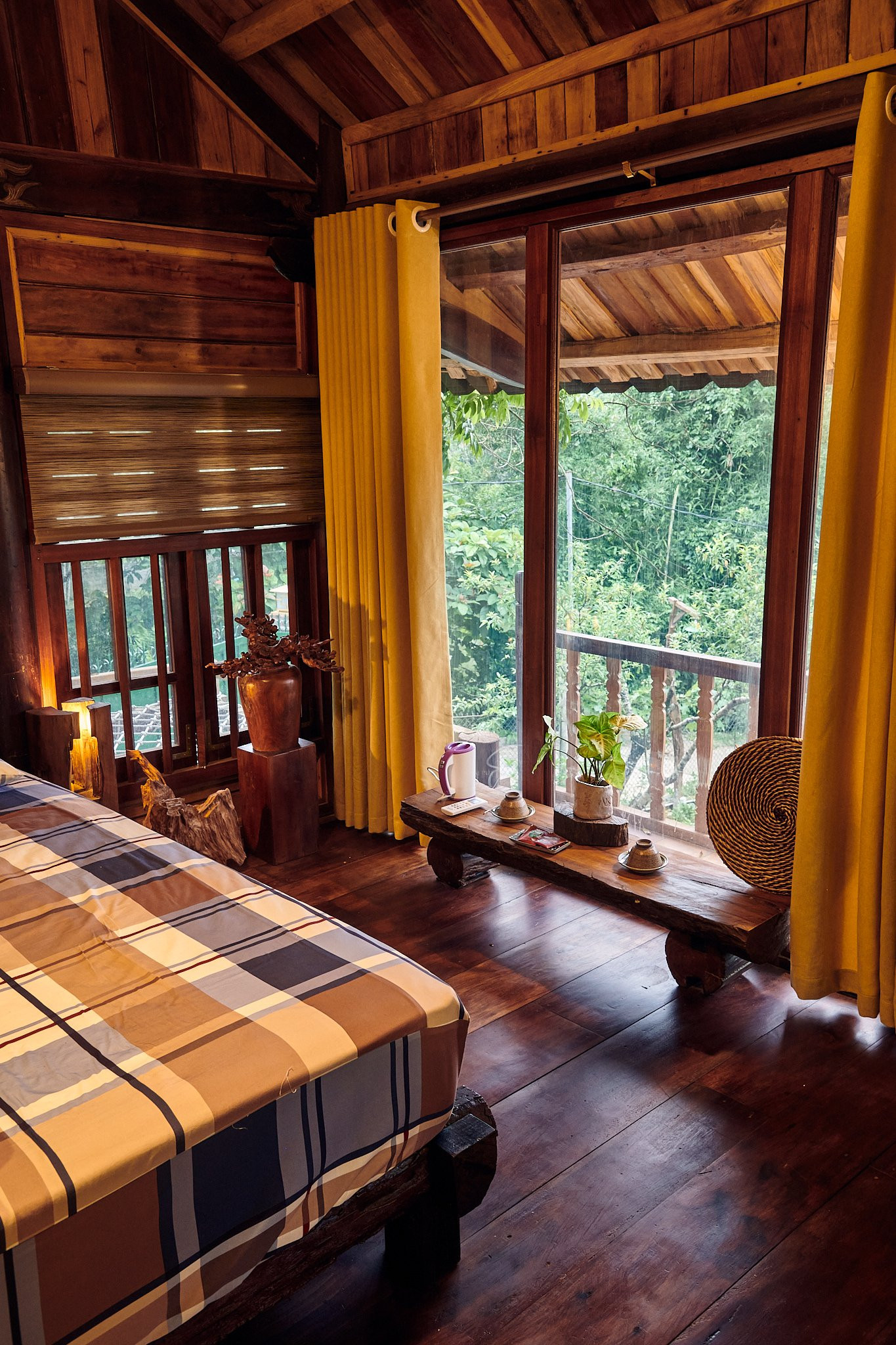 Khu nhà gỗ ở Lương Sơn (Hòa Bình) là nơi an hưởng tuổi già của cặp vợ chồng trung niên. Anh Việt Anh – con trai gia chủ chia sẻ: “Năm ngoái, bố mẹ tôi quyết định "bỏ phố về rừng" vì thấy sống trong bốn bức tường ở Hà Nội quá bí bách.