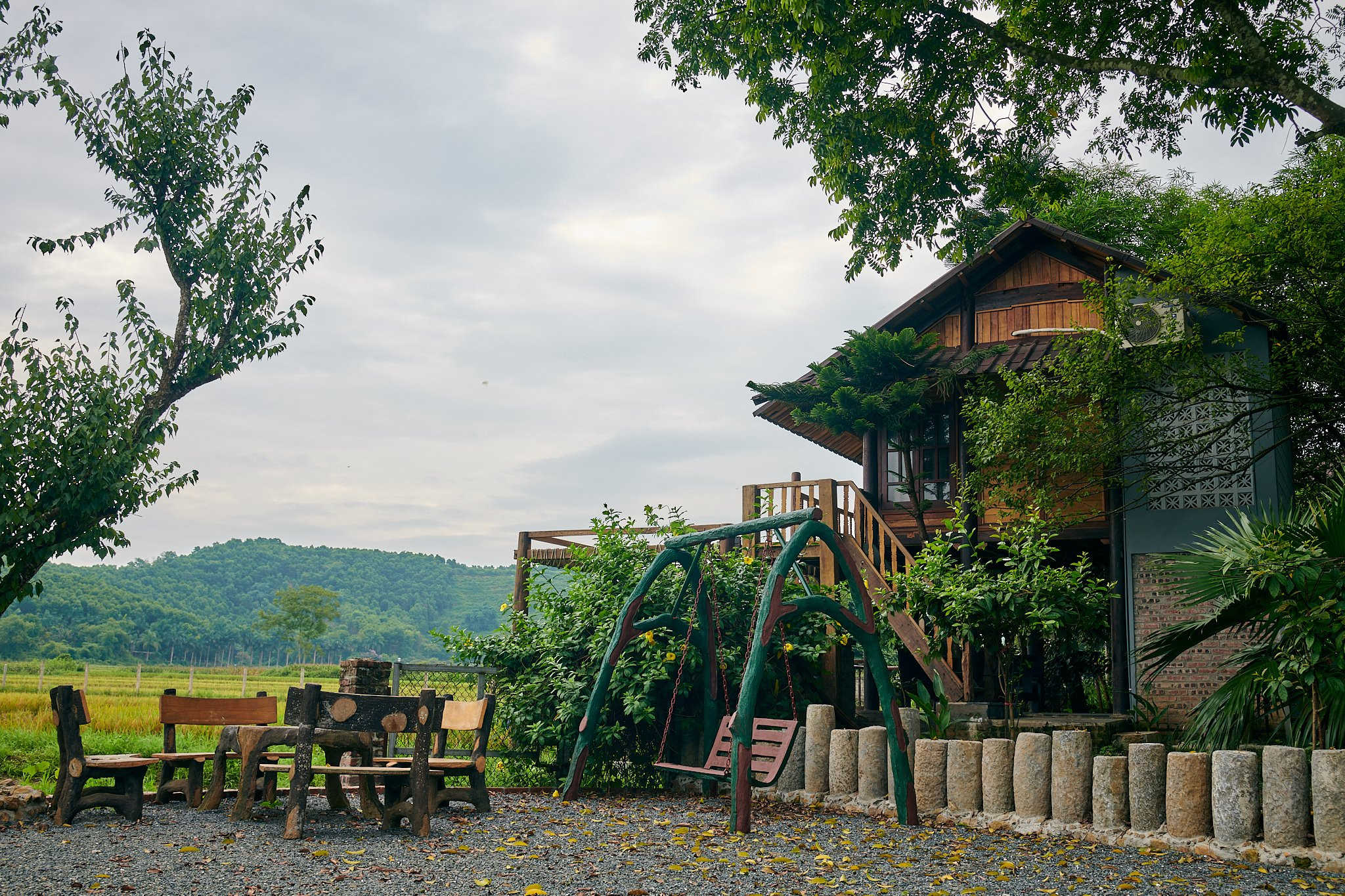 Gia đình Việt Anh đã quyết định cải tạo khu đất khoảng 1ha này thành khuôn viên với nhiều ngôi nhà nhỏ độc lập, nhiều cây xanh, giống cấu trúc ngôi làng.
