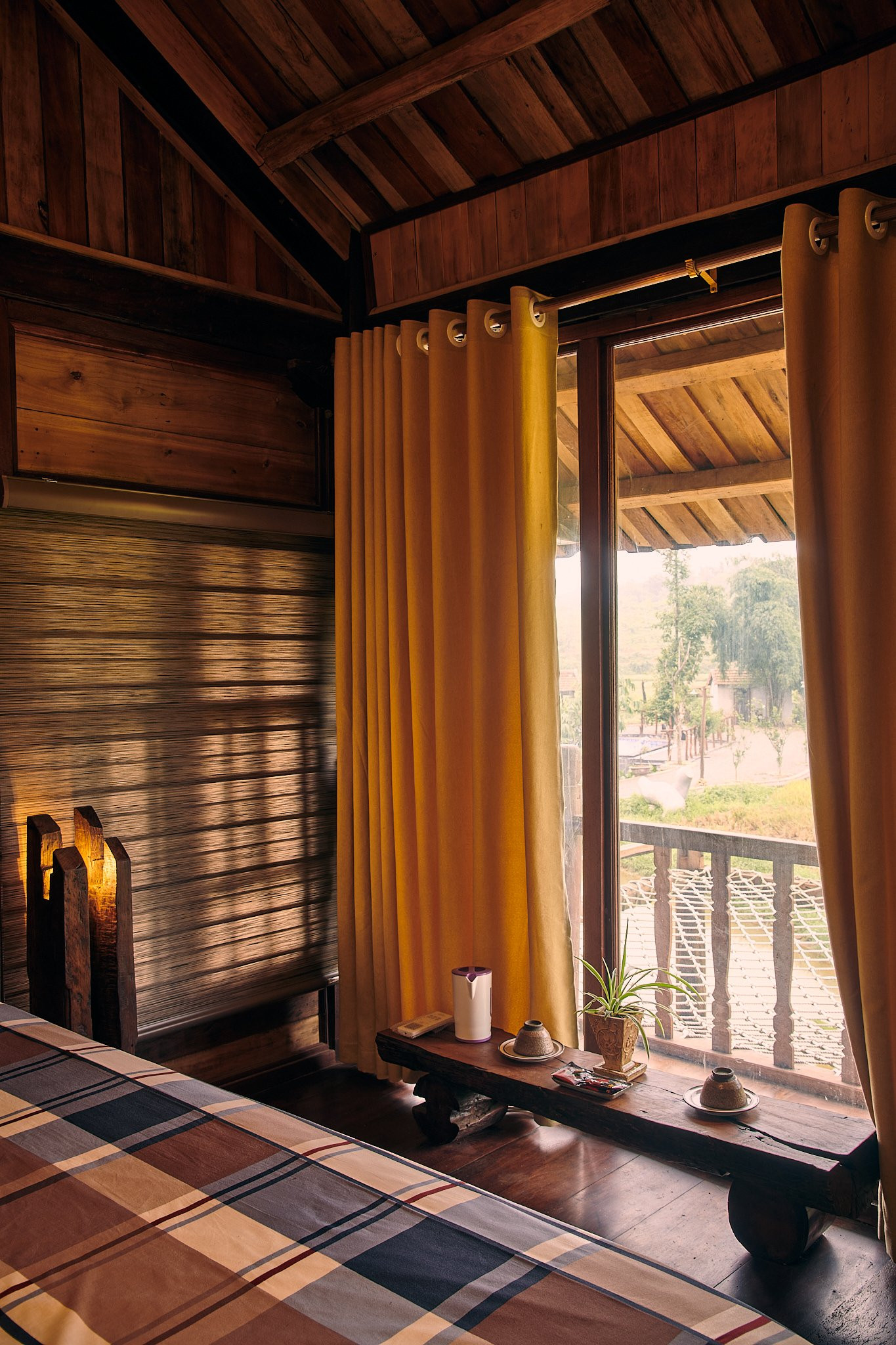 Khu nhà được xây theo không gian mở, mỗi phòng là một khu vực riêng, có đủ công năng sử dụng. Gia chủ mong muốn các con khi về chơi với bố mẹ, vẫn có nơi sinh hoạt độc lập, thoải mái. Các phòng này mô phỏng nhà sàn, tầng trên làm chỗ ngủ, tầng dưới làm nơi sinh hoạt hoặc đặt bộ bàn ghế hóng gió.