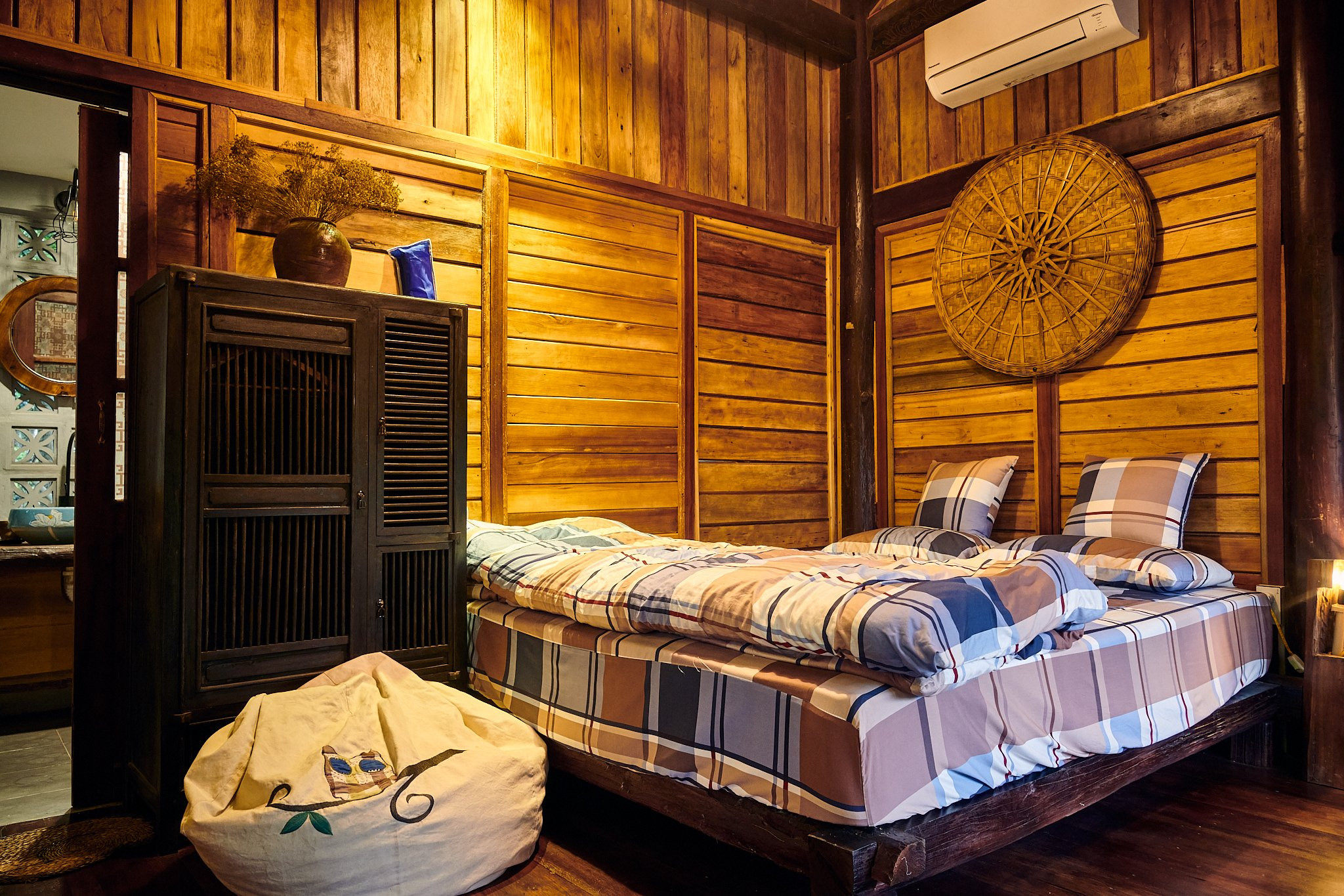 Phòng ngủ hướng đến thiên nhiên và sự trong lành, thoáng đãng. Mọi thứ được tối giản nhằm tiết kiệm diện tích những vẫn đảm bảo độ thẩm mỹ, hoài cổ.