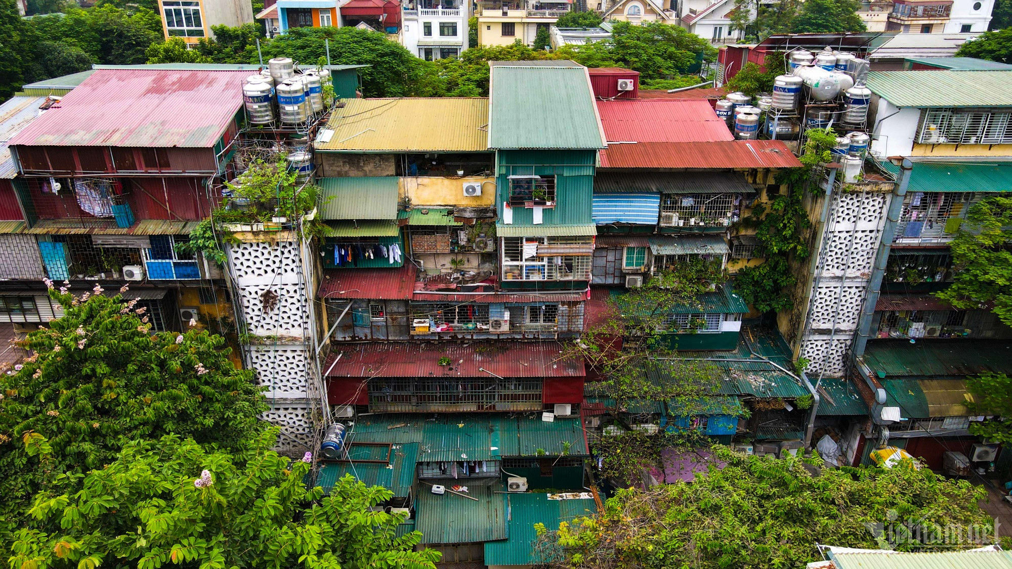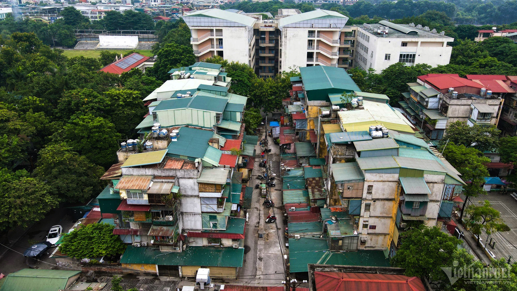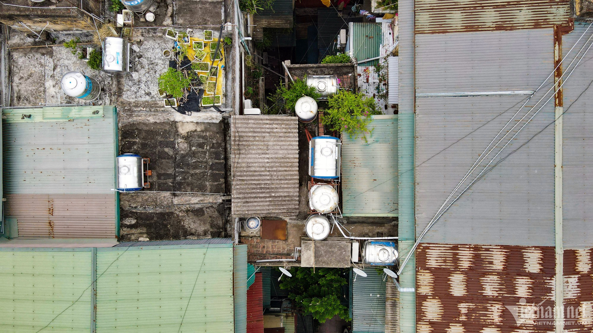 Nhìn từ trên cao, mỗi khoảng lại thấy một màu mái tôn khác nhau. Xung quanh, hệ thống "chuồng cọp" mọc lên lổn nhổn, ríu rít bám chặt lấy những bờ tường đã nhiều năm tuổi.