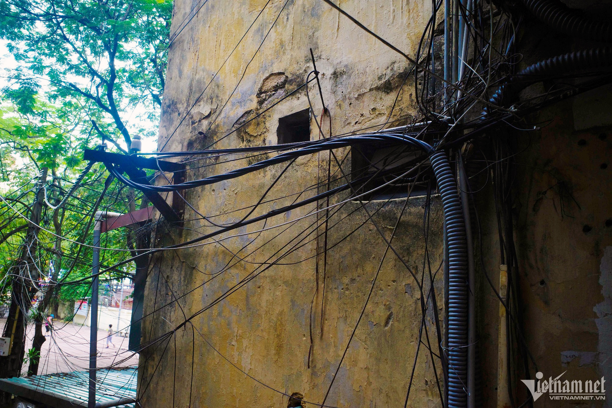 Dây điện chằng chịt nối dài ở các lối thoát hiểm, len lỏi qua các tầng của dãy nhà.
