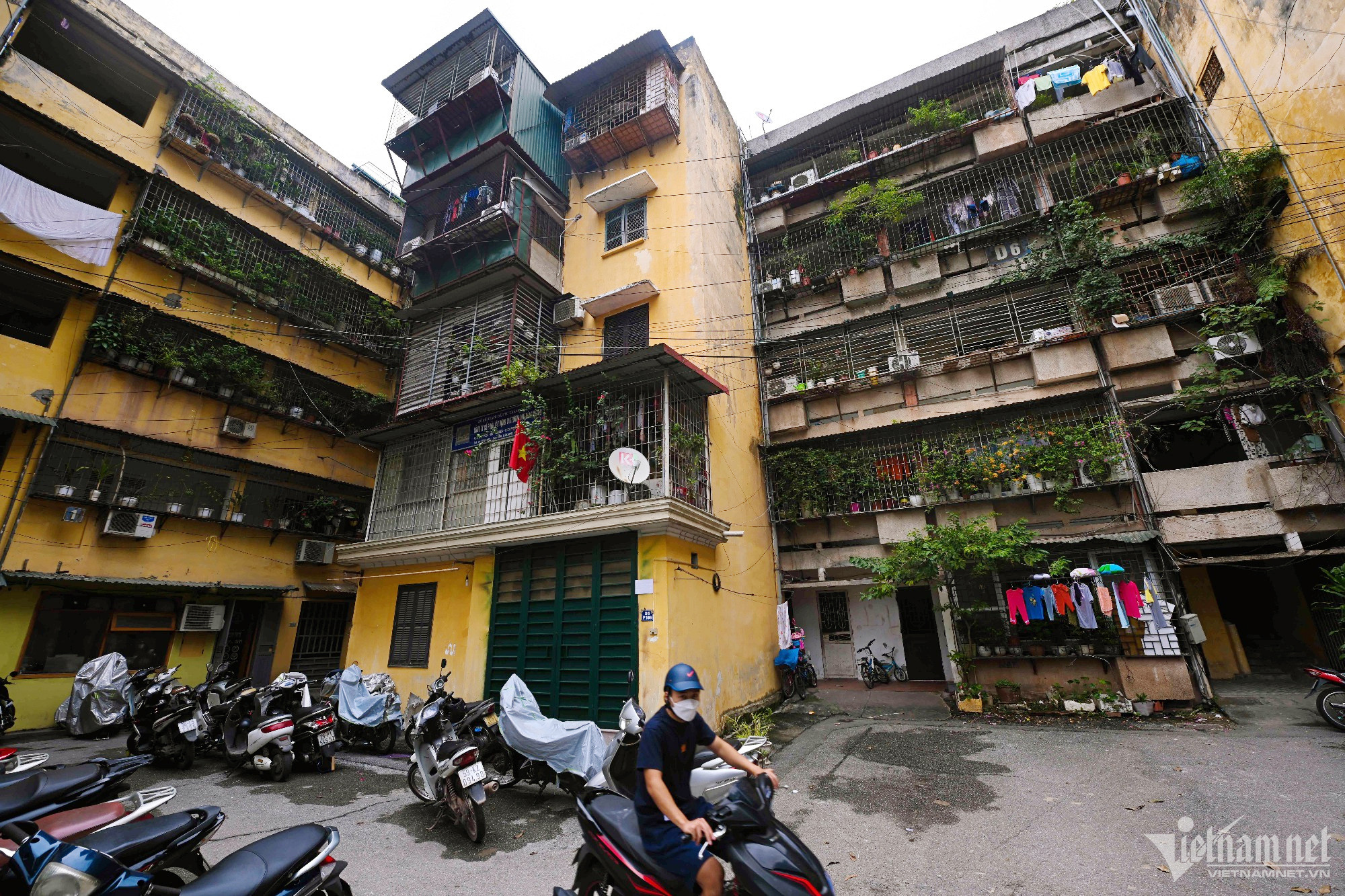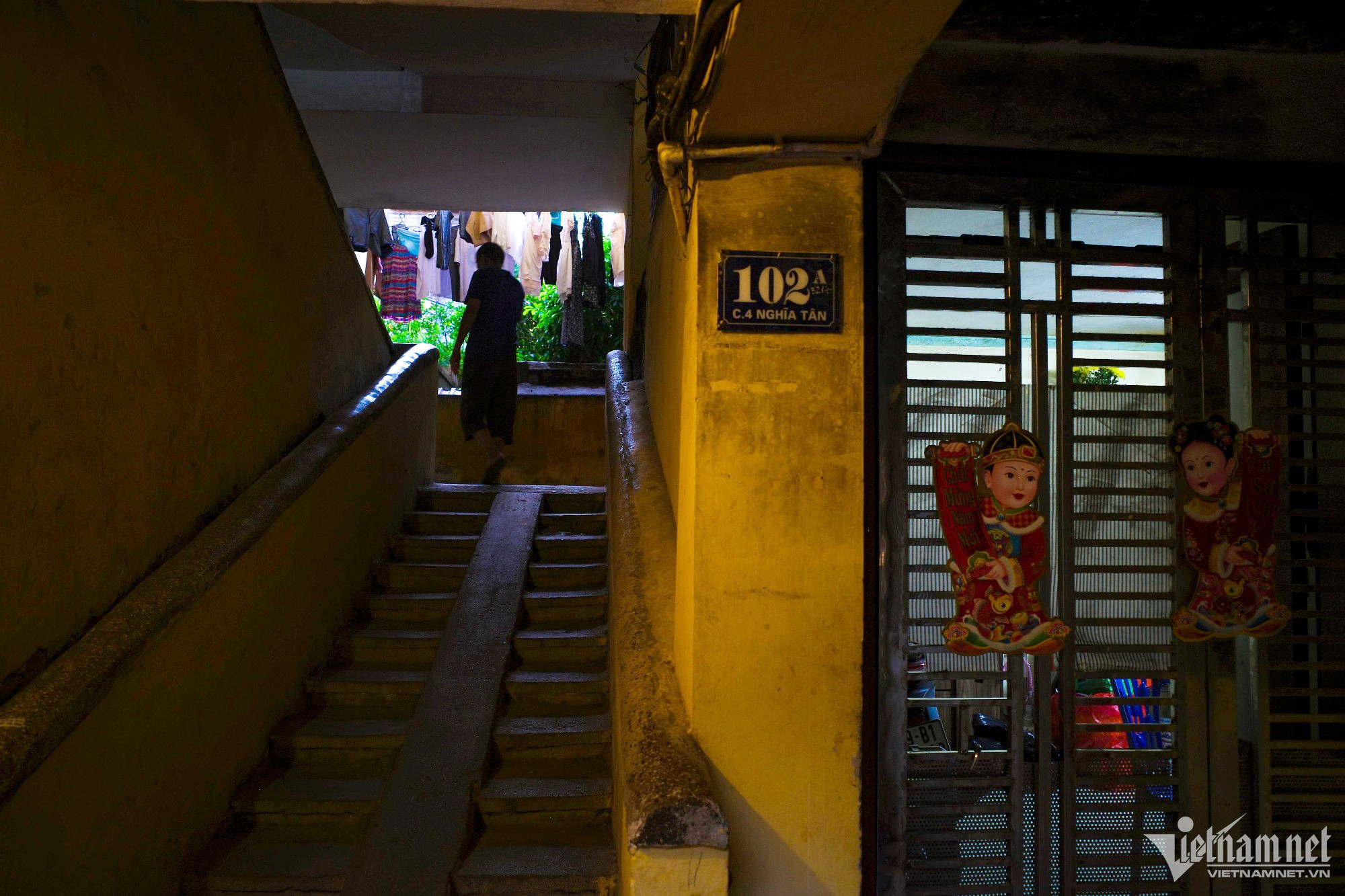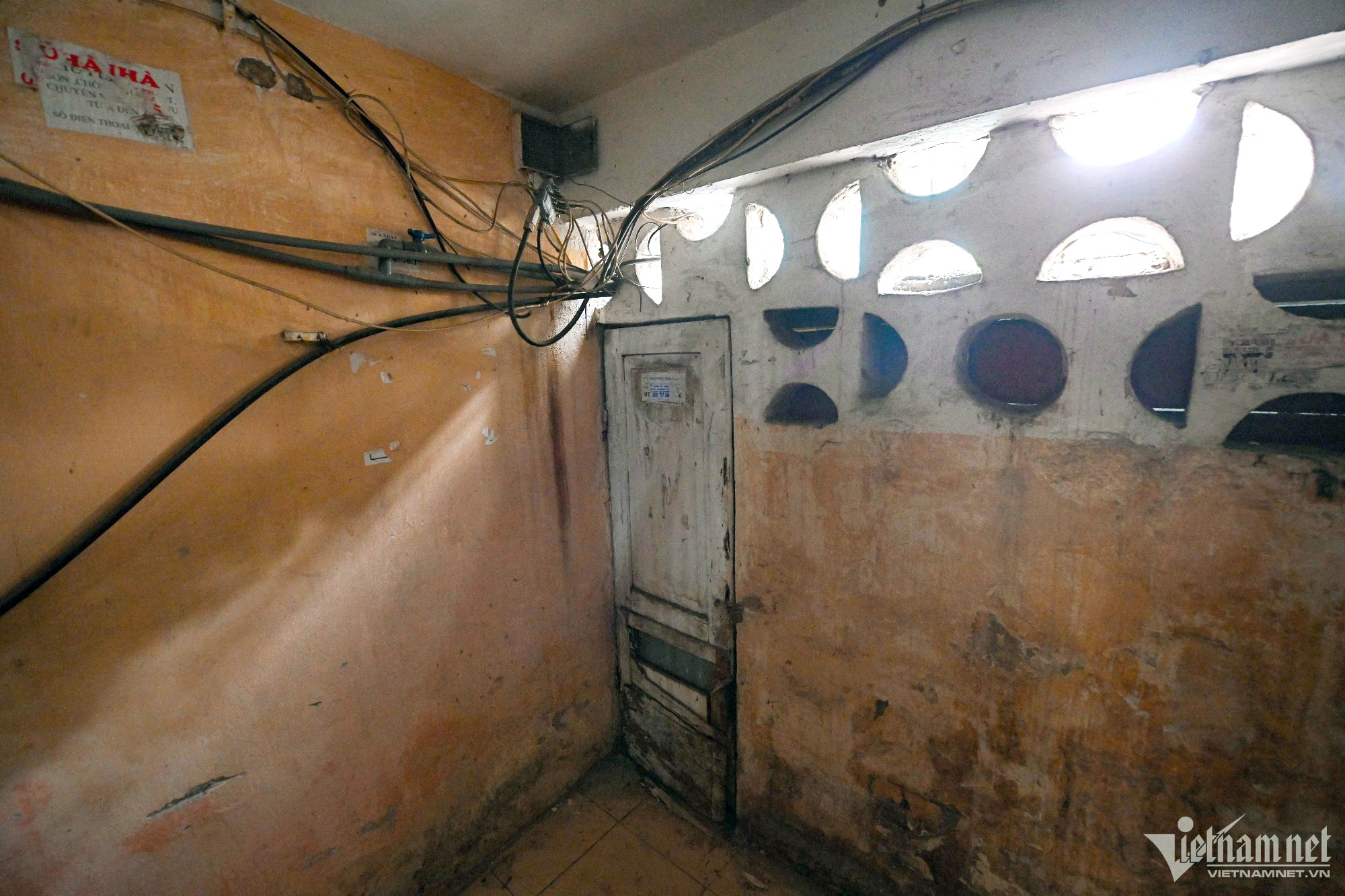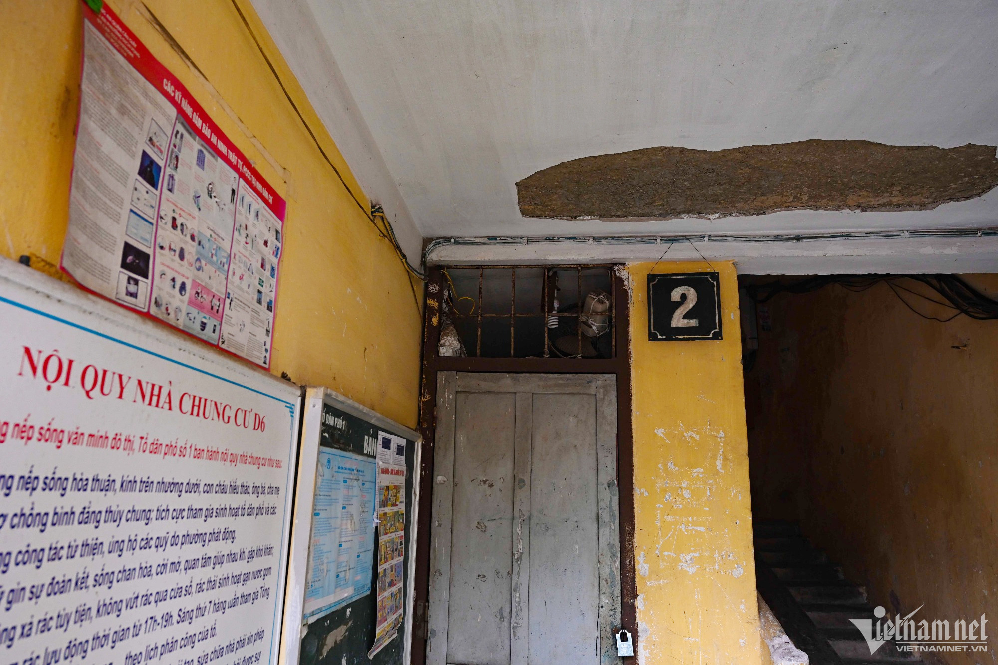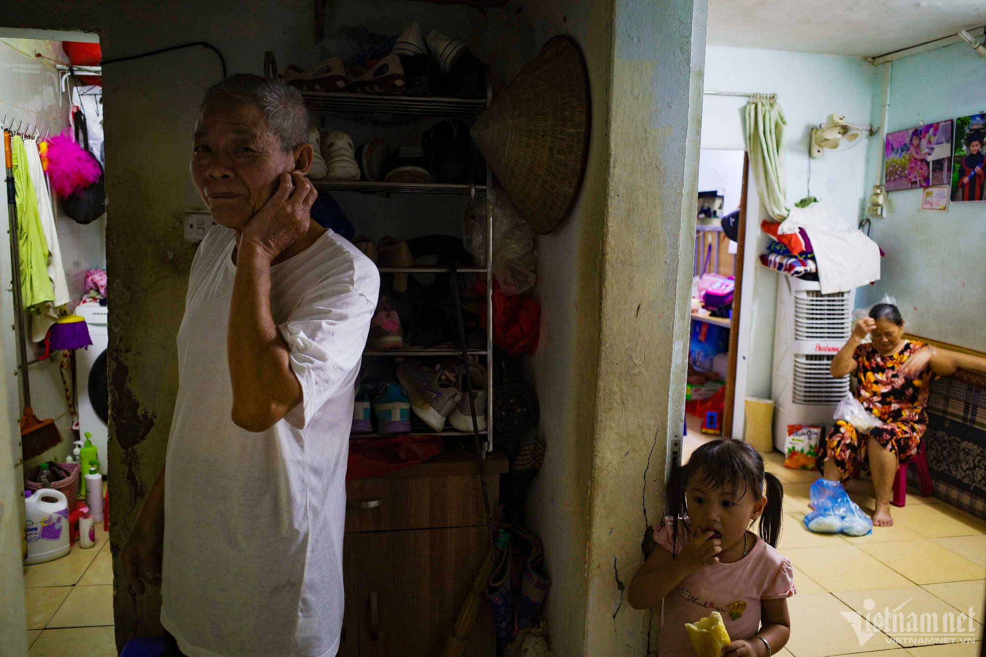 Gia đình ông Phạm Văn Giá sinh sống 3 thế hệ tại đây đã hơn 30 năm. 5 thành viên loay hoay trong một căn hộ 30m2 có tường ẩm mốc đổi màu cùng các vệt bong tróc theo thời gian. "Cứ chống ẩm lại dột, cứ sơn rồi lại bong. Do nhà tập thể xuống cấp, những năm qua nhiều người ở đây đã rao bán để chuyển đi nơi khác ở. Riêng gia đình tôi do tài chính eo hẹp buộc phải bám trụ để duy trì cuộc sống", ông Giá chia sẻ.