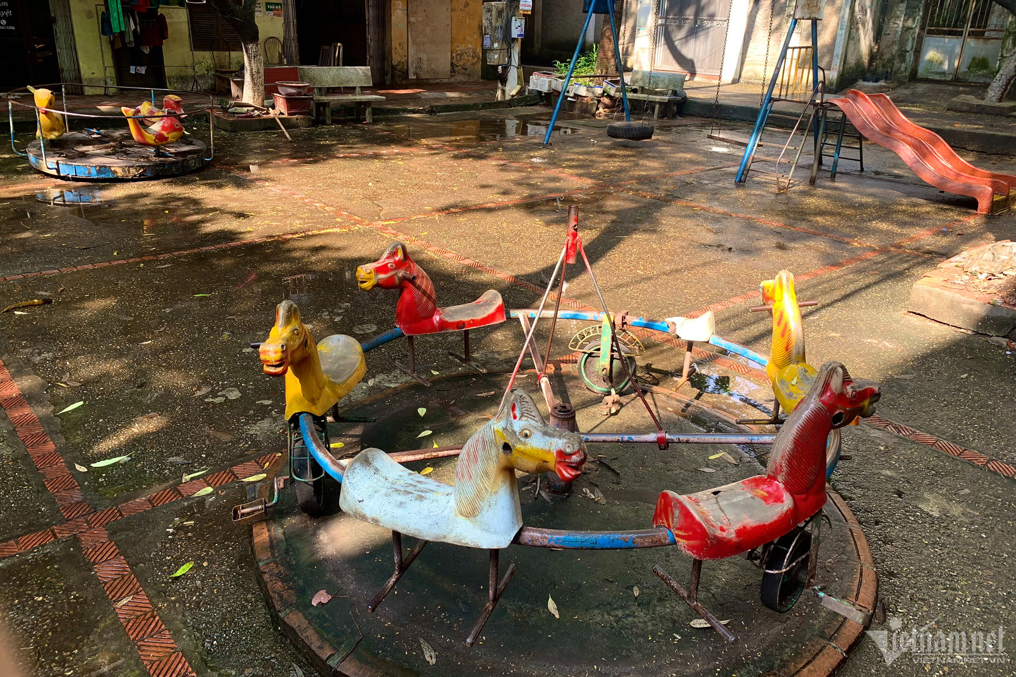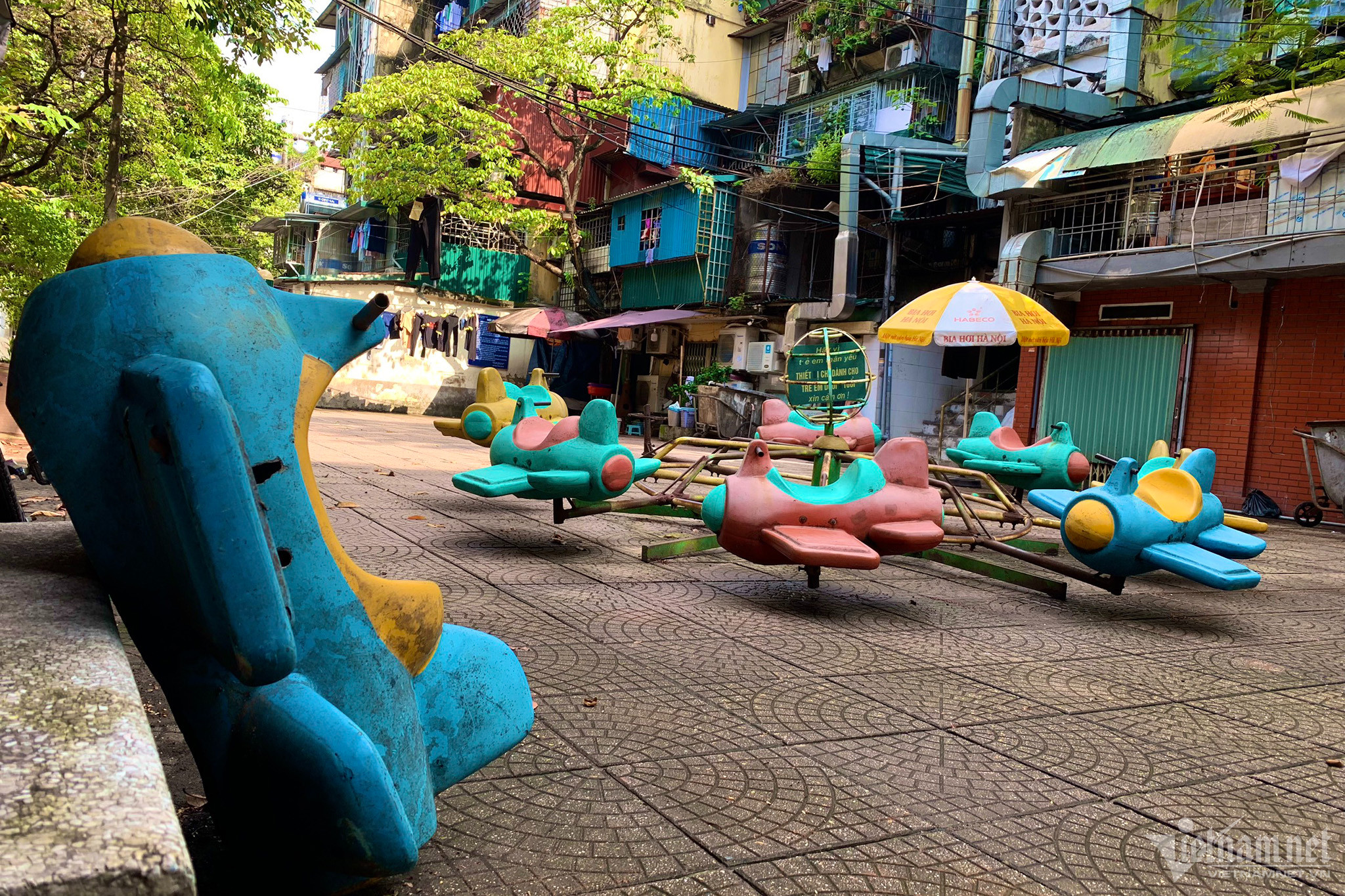 Nhiều thiết bị vui chơi dành cho trẻ em tại sân khu tập thể bị hoen gỉ dần theo thời gian và hầu như không còn giá trị sử dụng.