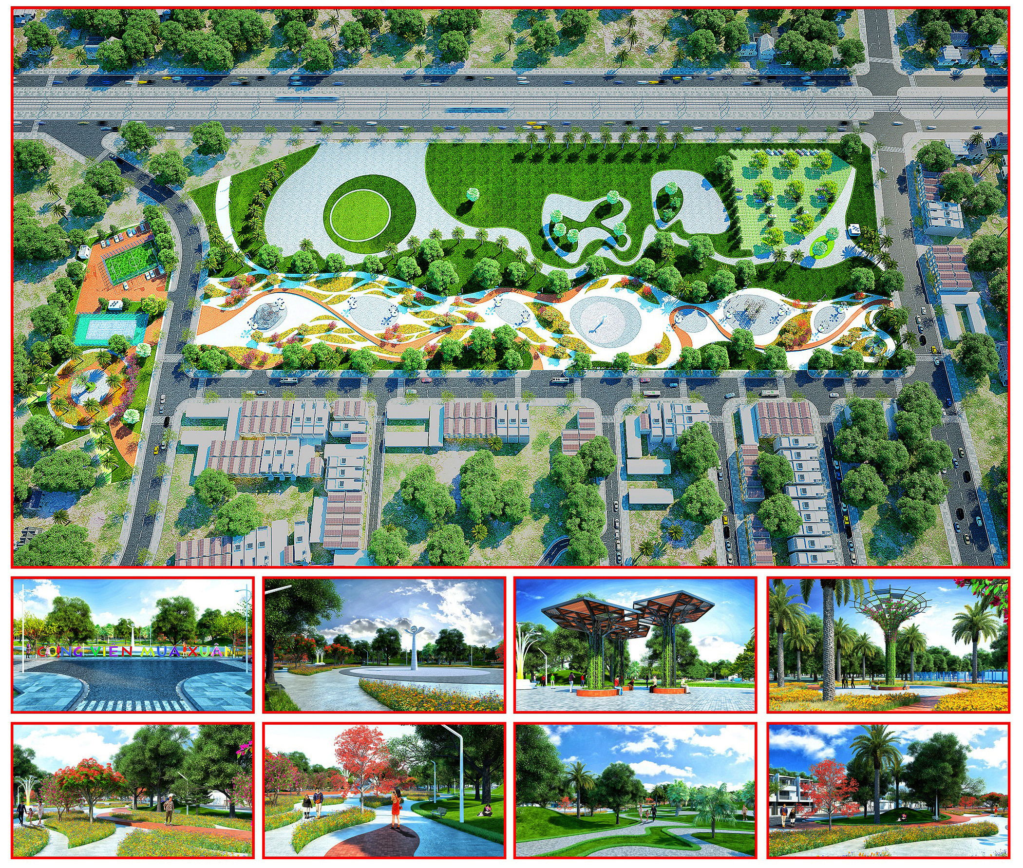 Dự án bao gồm các hạng mục như: San nền, tượng đài, vườn hoa, sân thể dục, sân chơi, sân bê tông, sân vận động, sân tenis, bãi đỗ xe, đường nội bộ, các hạng mục phụ trợ kèm theo... Tổng kinh phí đầu tư trên 77 tỷ đồng, được trích từ ngân sách TP. Phổ Yên.