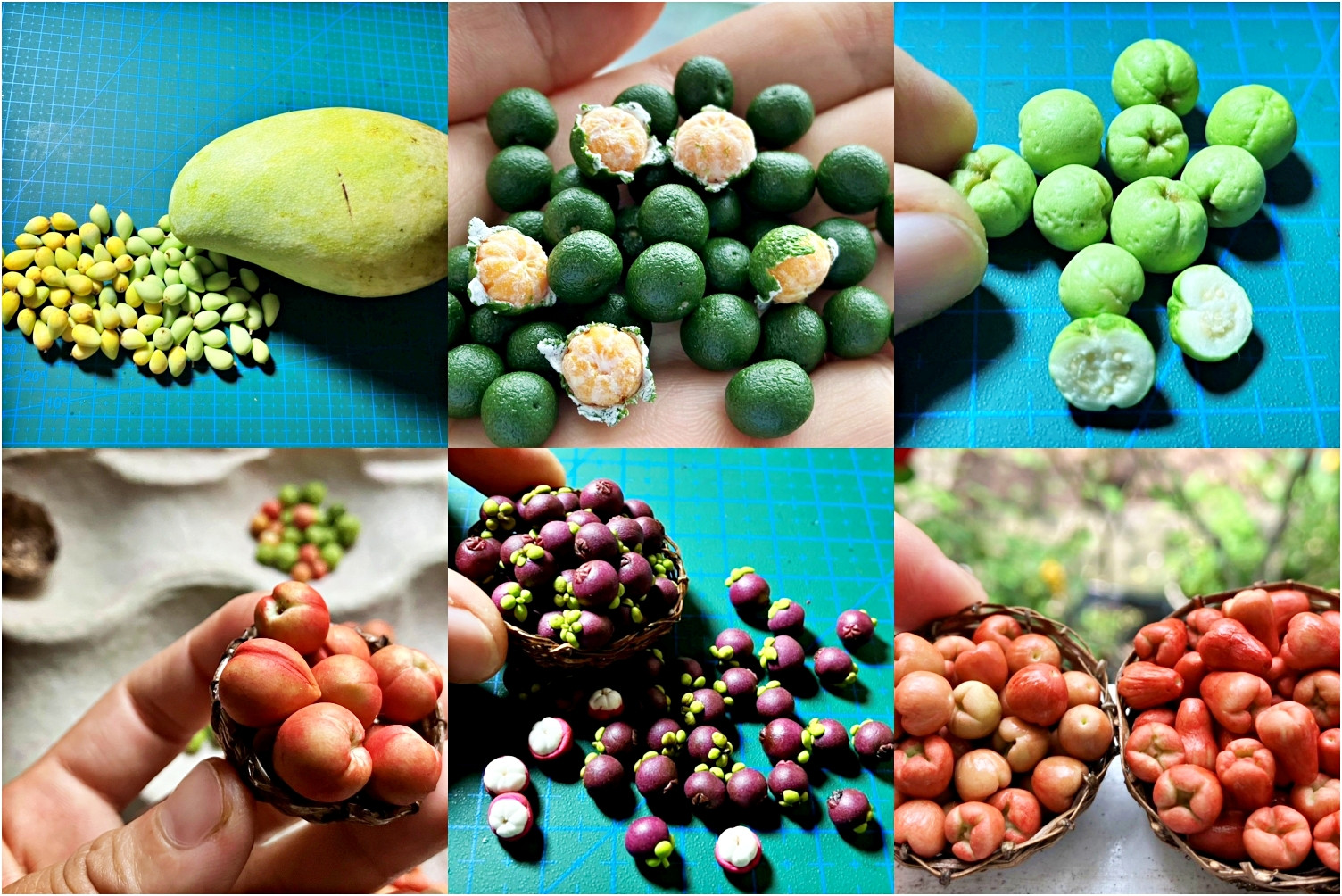 Các sản phẩm của chị đều tinh xảo, có màu sắc sống động, trông như thật. Trong số này phải kể đến bộ sản phẩm Khu vườn trái cây miền Tây bằng đất sét gây sốt cộng đồng mạng những ngày qua.