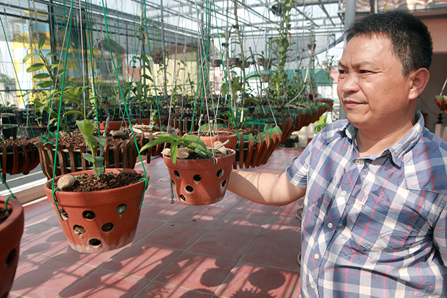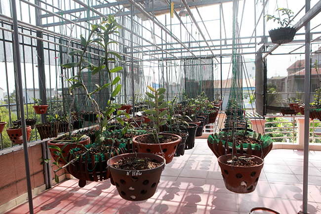 Theo quan sát của phóng viên, những chậu lan được anh Tấn treo dày đặc trên những ống sắt dài hàng chục mét. Các giỏ lan xanh tốt treo lủng lẳng thành từng tầng, phân ra từng loại khiến ai bước vào cũng như bị mê hoặc.
