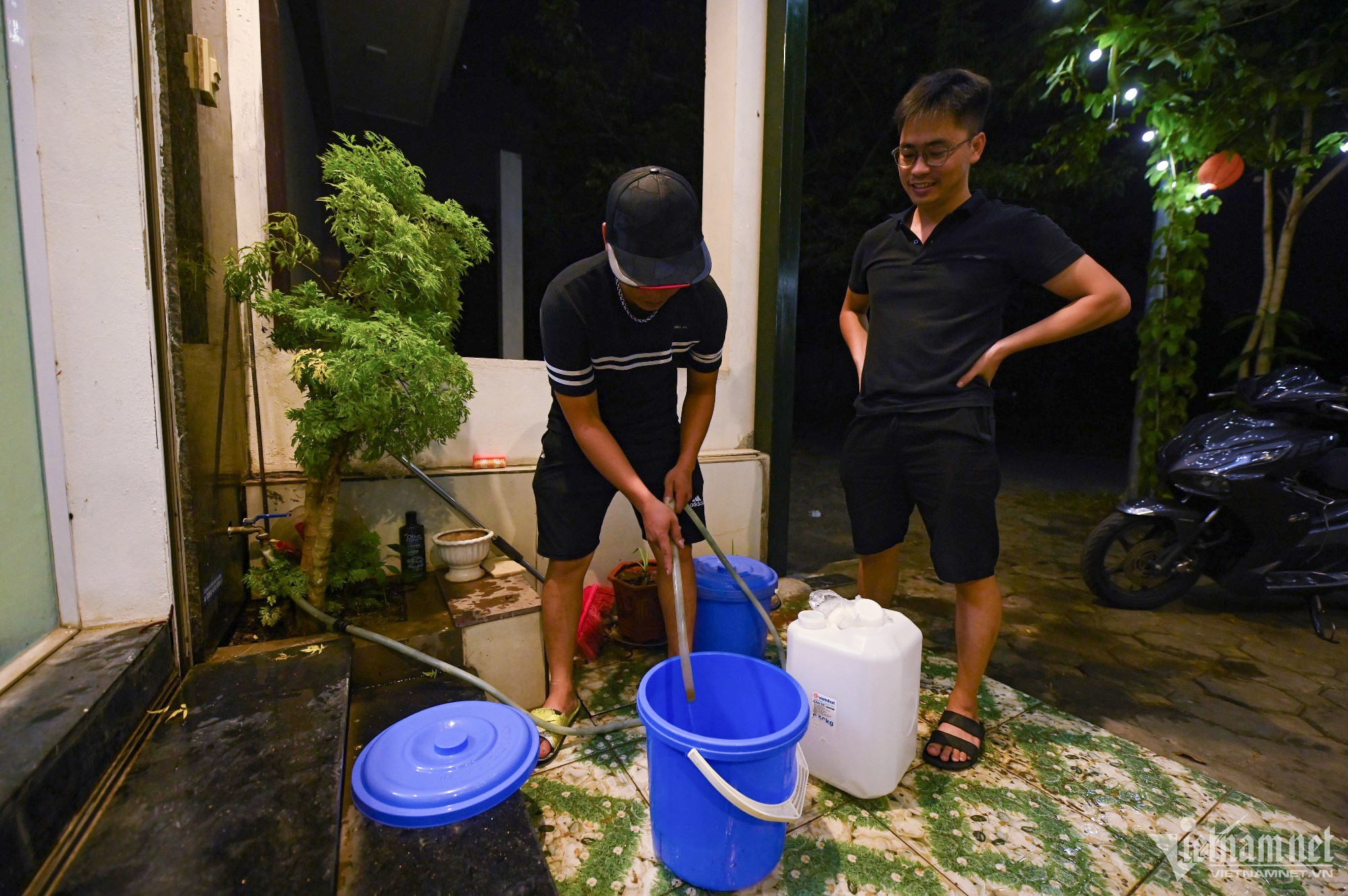"Mấy ngày nay, không chỉ đơn đặt mua nước đóng chai tăng chóng mặt, họ còn đặt hàng thêm cả nước máy sạch. Do đó tôi phải bơm nước máy nhà mình vào các thùng to mang đến", anh Xuân - chủ cửa hàng nước đóng chai kể. Được biết, các cư dân khu đô thị Thanh Hà mua nước đóng chai chủ yếu để nấu nướng, còn nước máy để có thể chủ động giặt quần áo tại nhà.