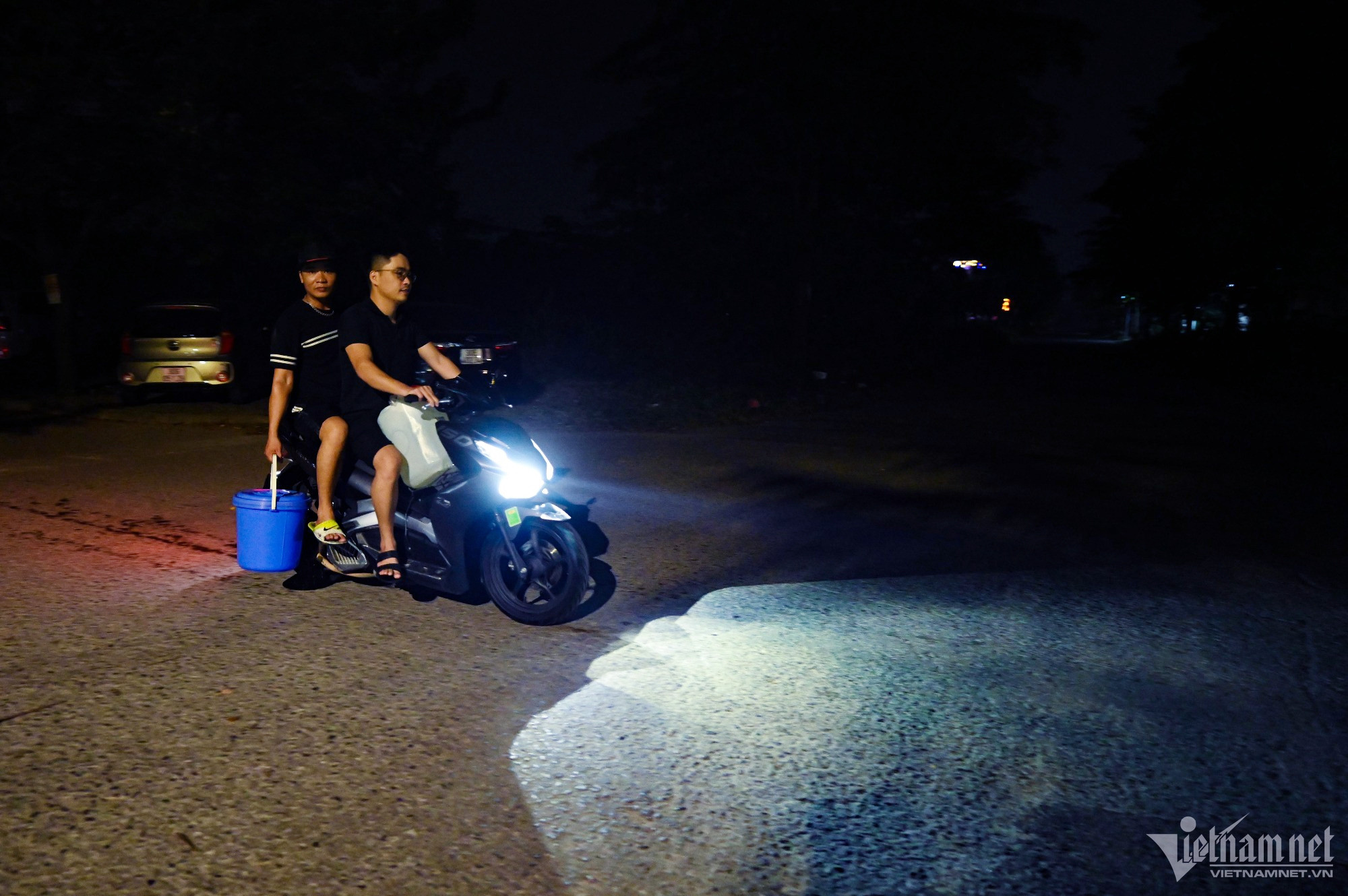 Xô, chậu, thùng sơn, bình nước là những vật dụng người dân tại 3 toà HH3A, HH3B, HH3C mang theo xếp hàng đợi hứng nước xuyên đêm. Cảnh tượng này kéo dài đến đến tờ mờ sáng 18/10.