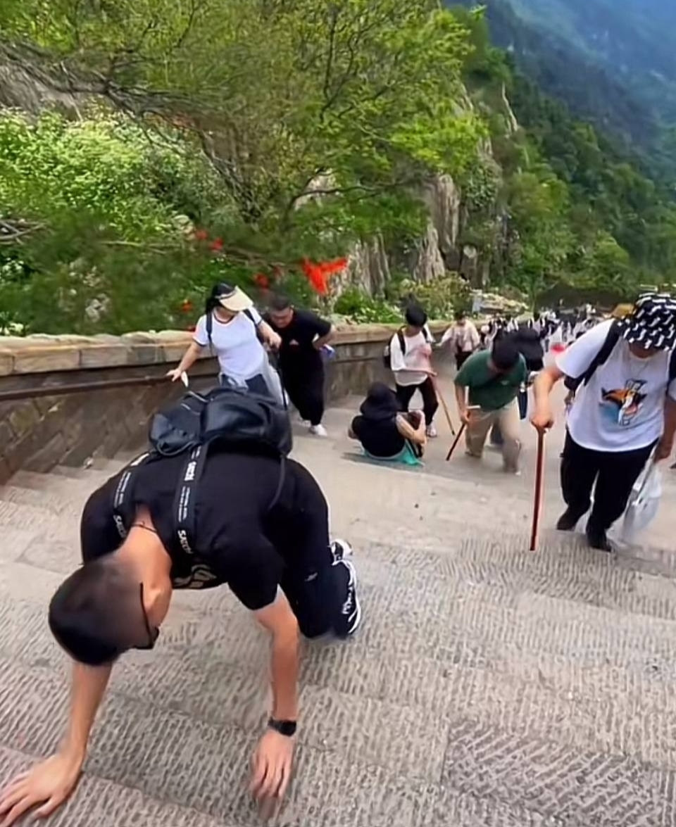 Hành trình chinh phục đỉnh núi này không hề dễ dàng với hơn 6.293 bậc thang. Độ dốc của các bậc thang khiến không ít người bật khóc vì quá mệt.