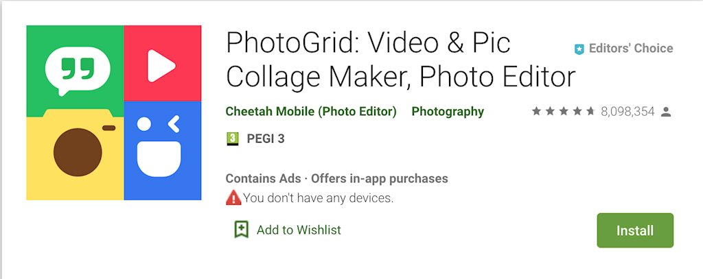 PhotoGrid là phần mềm chỉnh sửa ảnh trên điện thoại, không chỉ có các chức năng như chỉnh sửa ảnh, lọc, ghép ảnh, mà còn là một ứng dụng mạng xã hội tổng hợp. Vào năm 2017, lượt tải trên toàn cầu đạt trên 300 triệu lượt, người dùng hoạt động thường xuyên đạt trên 40 triệu.
